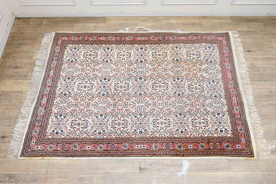 ----------------------------------------------------------------------------------------- ●送料や注意事項は必ずご確認下さい。落札後にトラブルになるケースが増えております。● ◆コンディションは写真・文章にて記載して有りますが、全てのキズの写真は掲載致しておりません。大きなダメージを除き見落とし、記載漏れが有る事はご了承下さい。 ◆当サイトにて出品する商品は多種多彩で、当方商品知識の無い物も多数ありますので落札後の質問やメンテナンス等にはお答えできません。 ◆入札された時点で、画像、文章をご理解していただいたものと判断させていただきます。不明な点は前もってQ&Aからお願い致します。入札後の質問やお電話等でのキャンセルは一切受け付け致しません。 ◆商品説明に「ノークレーム」と記載しているものに関しては、如何なる状況で届いても保証致しません。詳しくは注意事項の「商品到着後について」の最後に記載しておりますのでご確認下さい。 ---------------------------------------------------------------------------------------- 中古品ですのでキズ、ヨゴレ、房切れ、チリ、髪の毛残り等有ります。 中古品ですのでこちらのお品はノークレームノーリターンでの出品となります。 クリーニング推奨です。 幅270x167.5cm | ||
