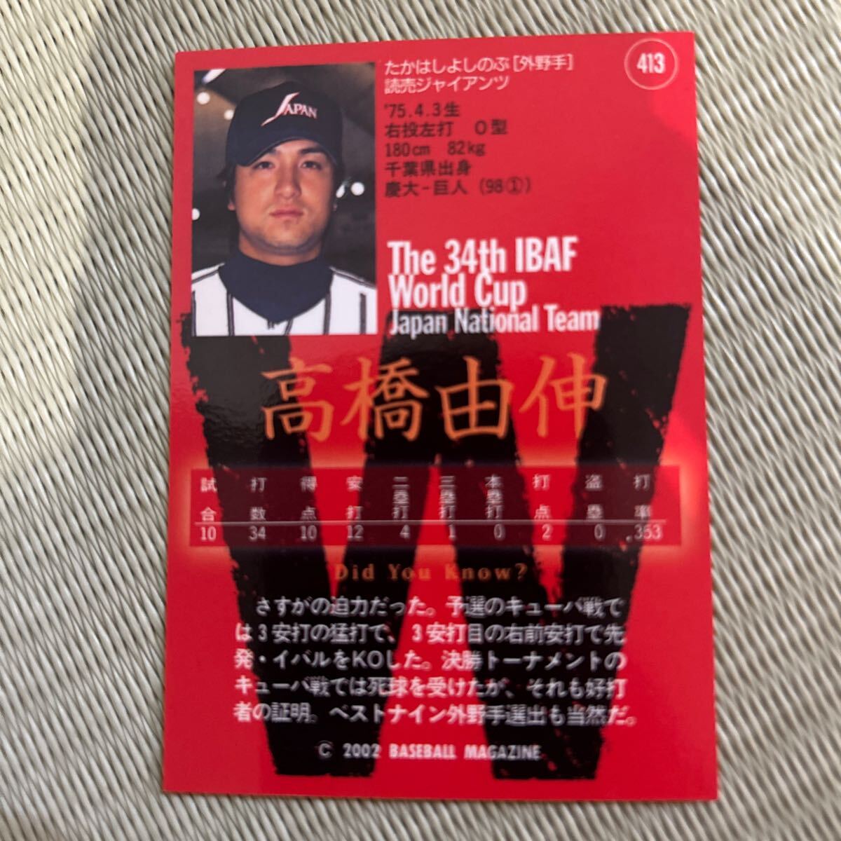2002BBM 413 高橋由伸 読売ジャイアンツ オリンピック