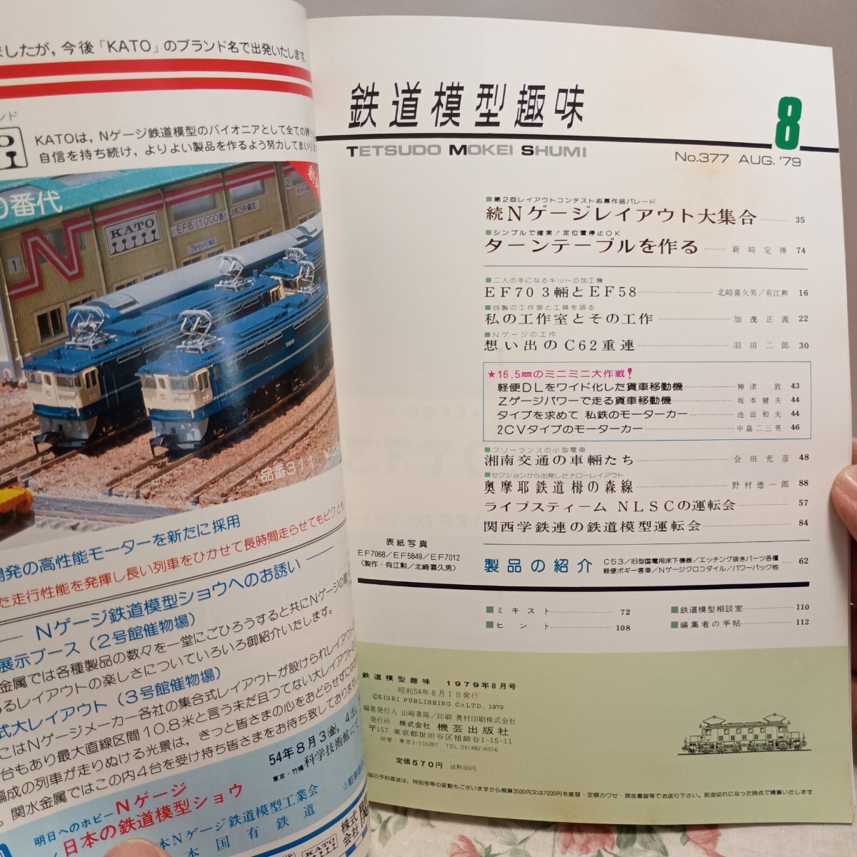鉄道模型趣味 昭和 54年8月発行 377 Hobby of Model Railroading NゲージC62重連 ターンテーブルを作る 自由型電車6輛 貨車移動機