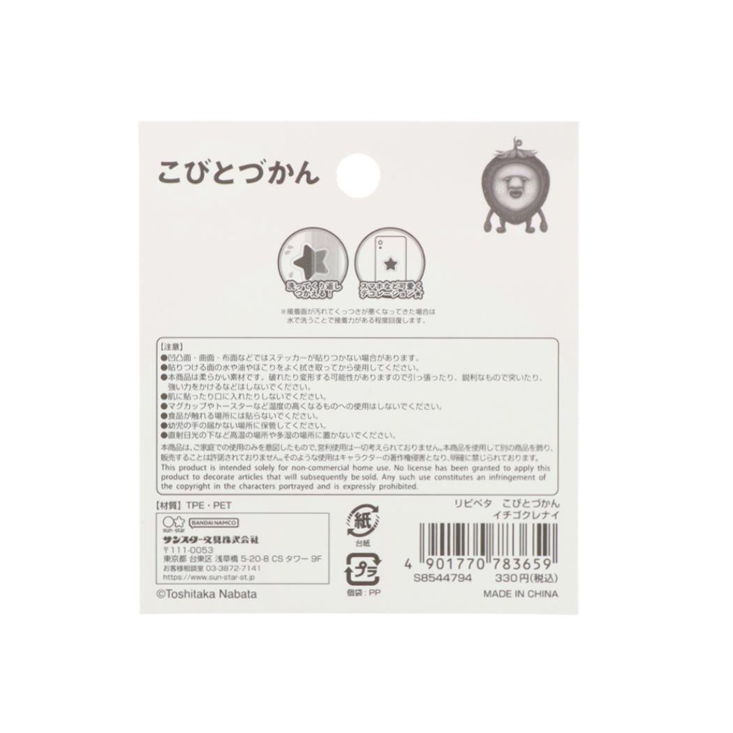 くりかえしペタペタ貼れる 大人気[こびとづかん]グッズにまたまた可愛いnewアイテム登場こちらは繰り返し使える[リピペタステッカー]洗って繰り返し使えるダイカットステッカーです。接着面が汚れてくっつきが悪くなってきた場合は水で洗うことで接着力がある程度回復します。スマホなどを可愛くデコレーションしてね。可愛いシール他にも沢山あるのでお気に入りを見つけてね。サイズ:約80x65x0.3mm以内(キャラクターによってサイズは異なります)素材:TPE、PET