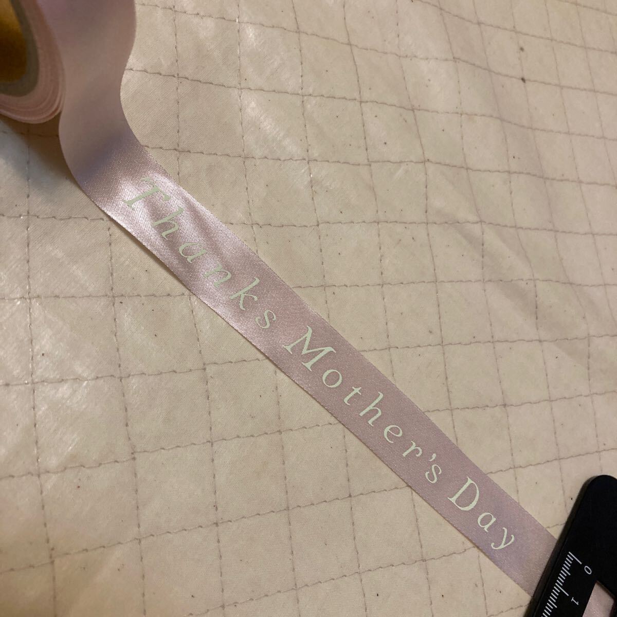 ピンク色のリボンはサンクスマザーズデイと英語がプリントされています。