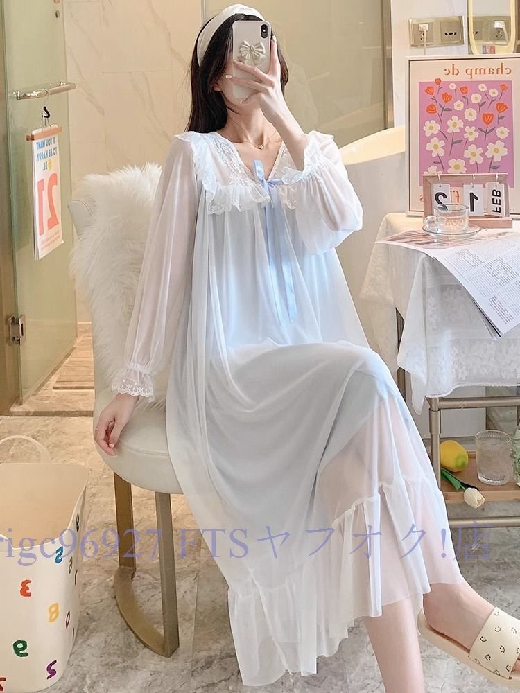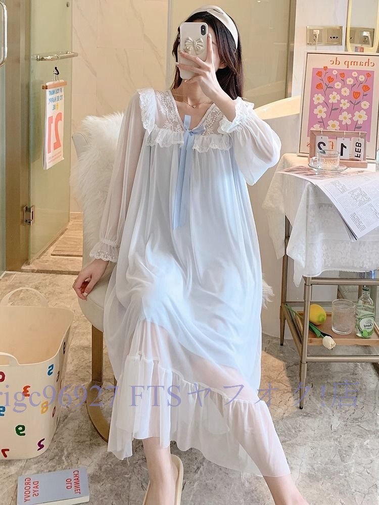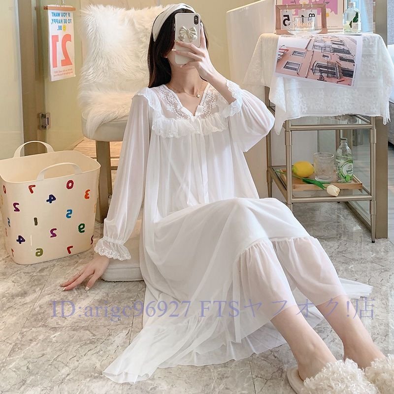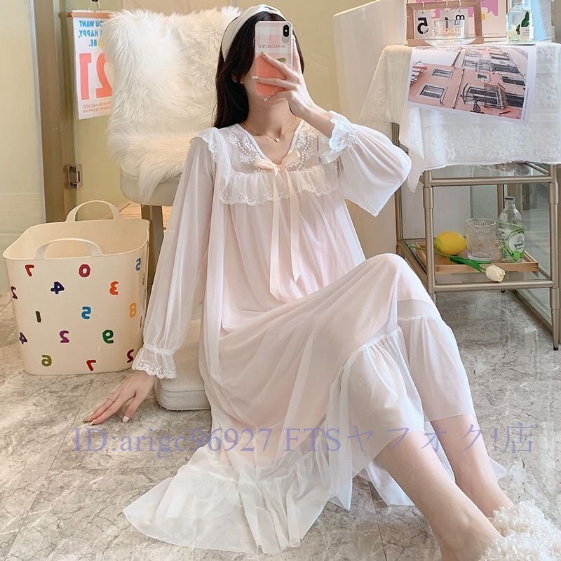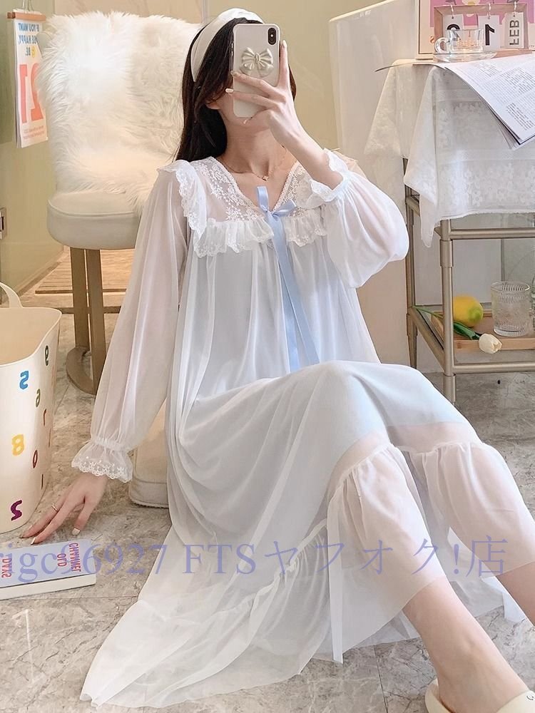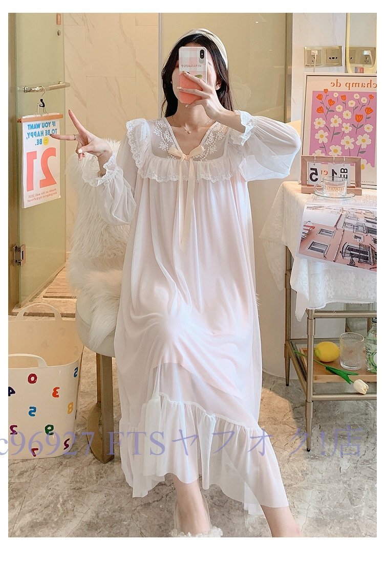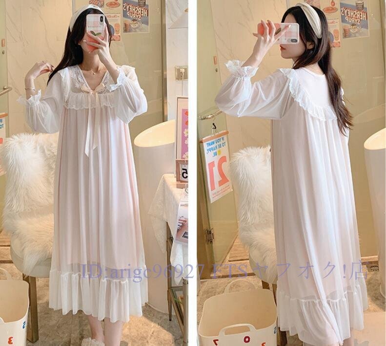 ★新品長袖 部屋着 お姫様 レース 寝巻き 薄手 ネグリジェ パジャマ レディース ルームウェアお色選択可