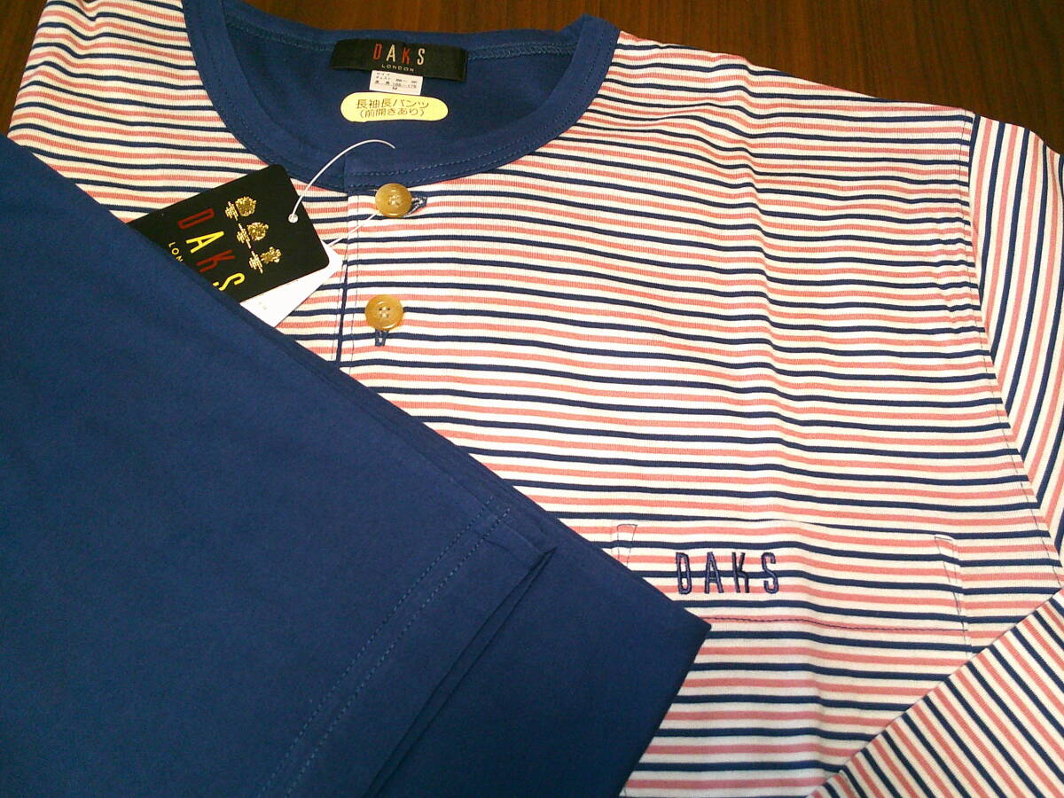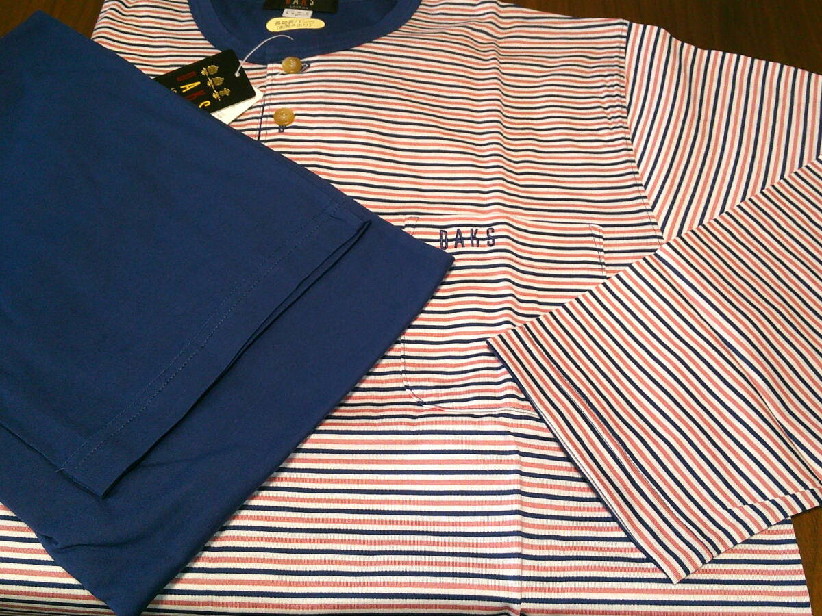 DAKS ダックス メンズパジャマ/ルームウエア ☆ Mサイズ ☆ ボーダー。。。ネイビーx白xピンク☆ パンツはネイビー 未使用品☆ 長袖長パンツ(前開き) サイズ表記はM チェスト 88~96 身長 165~175 ウエスト 76~84 _________________ M 素材 綿100% オールシーズン 用 定価11000円 よろしくお願いします。 | ||||||
