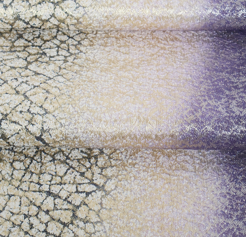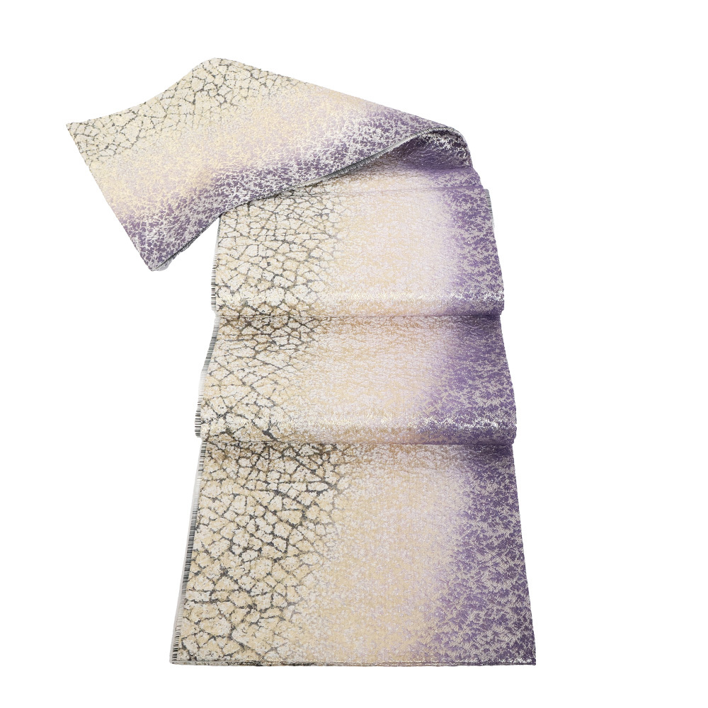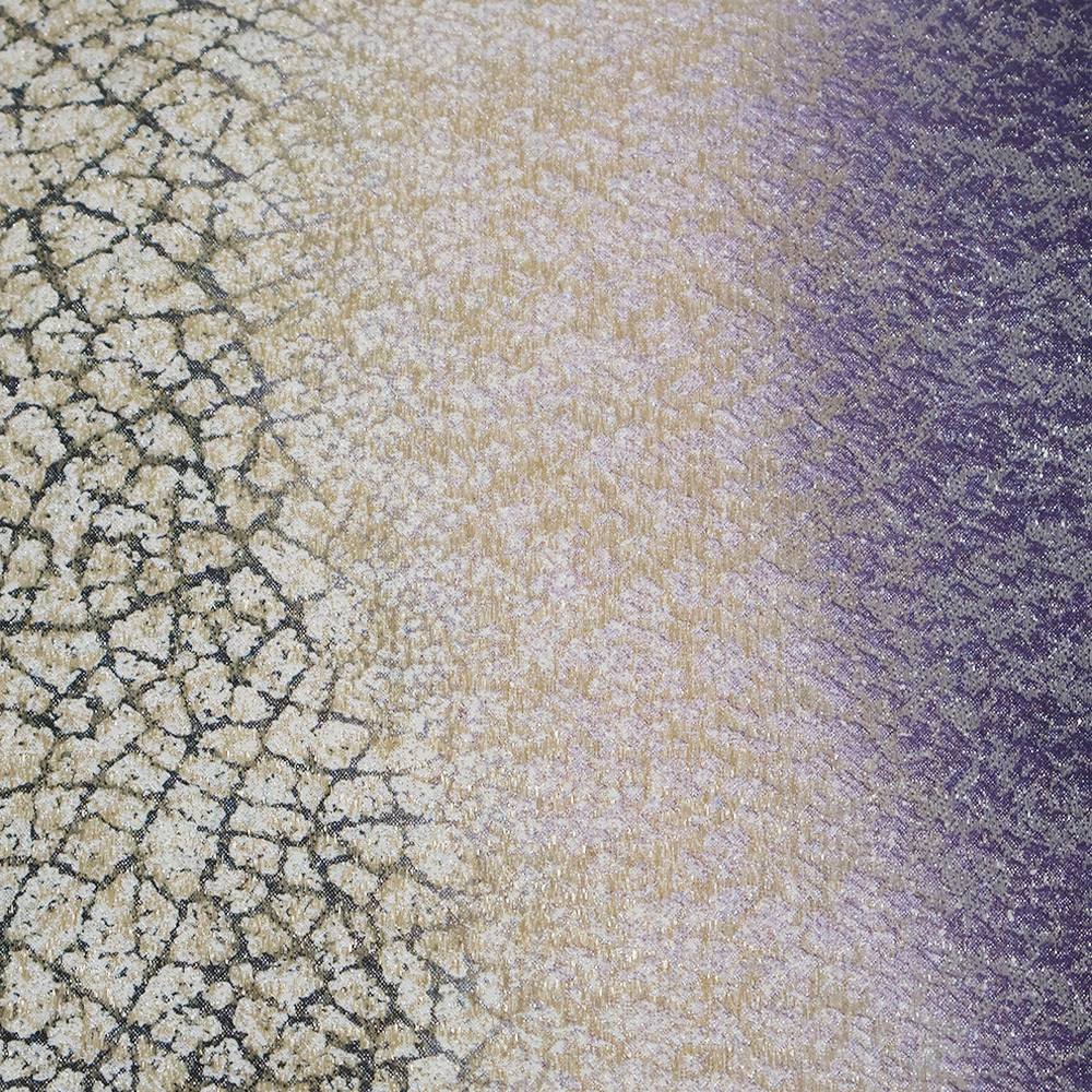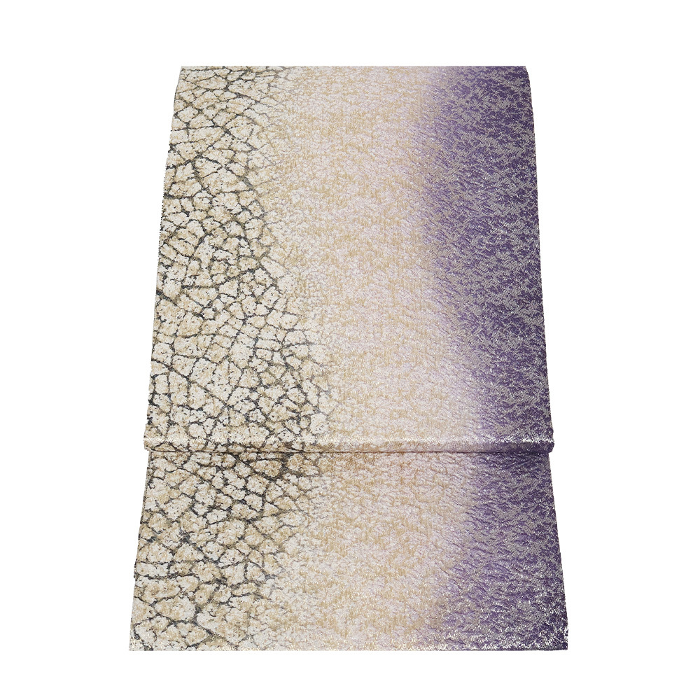 | 色・柄 | 西陣織袋帯 金・銀・紫・緑地 地割れ模様・流水 全通 裏地:黒・白・グレー・緑地 横縞 (写真では上手く色が出ない場合があります。ご了承下さい) ※お使いのディスプレイの種類や設定の差により 実物の色と画像の色が少々異なることもございます。 |