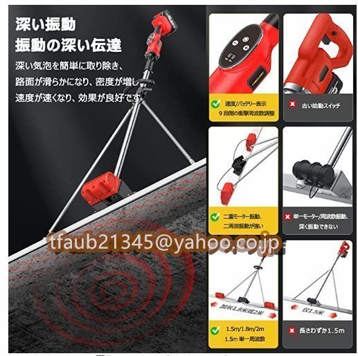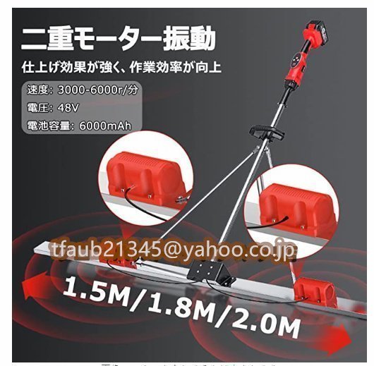 電動スクリード 高周波振動 レベリングスクリード コンクリート仕上作業 トップコート仕上作業 携帯用 均し仕上げ1.8M 電池1個