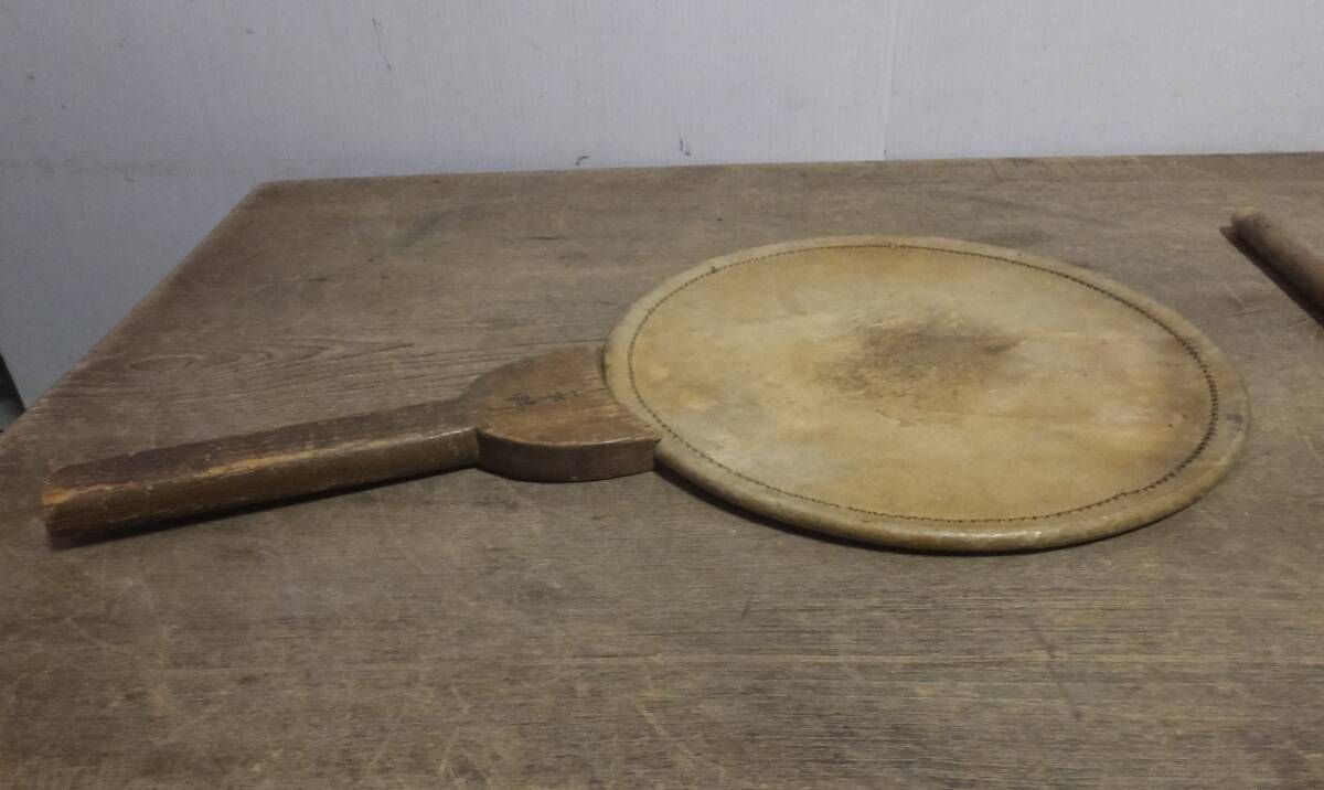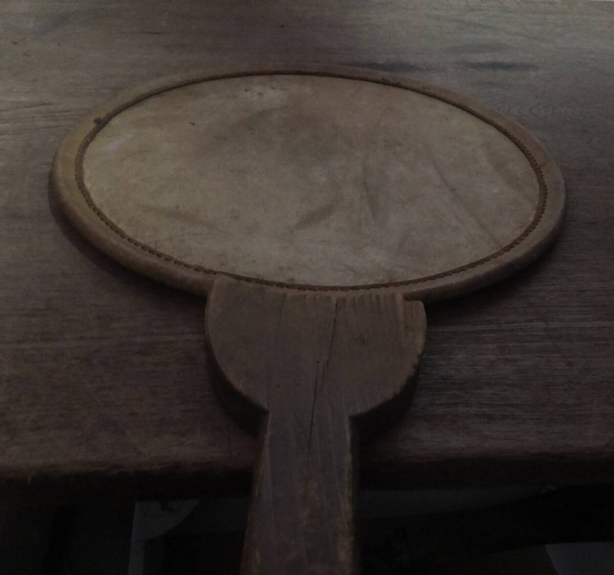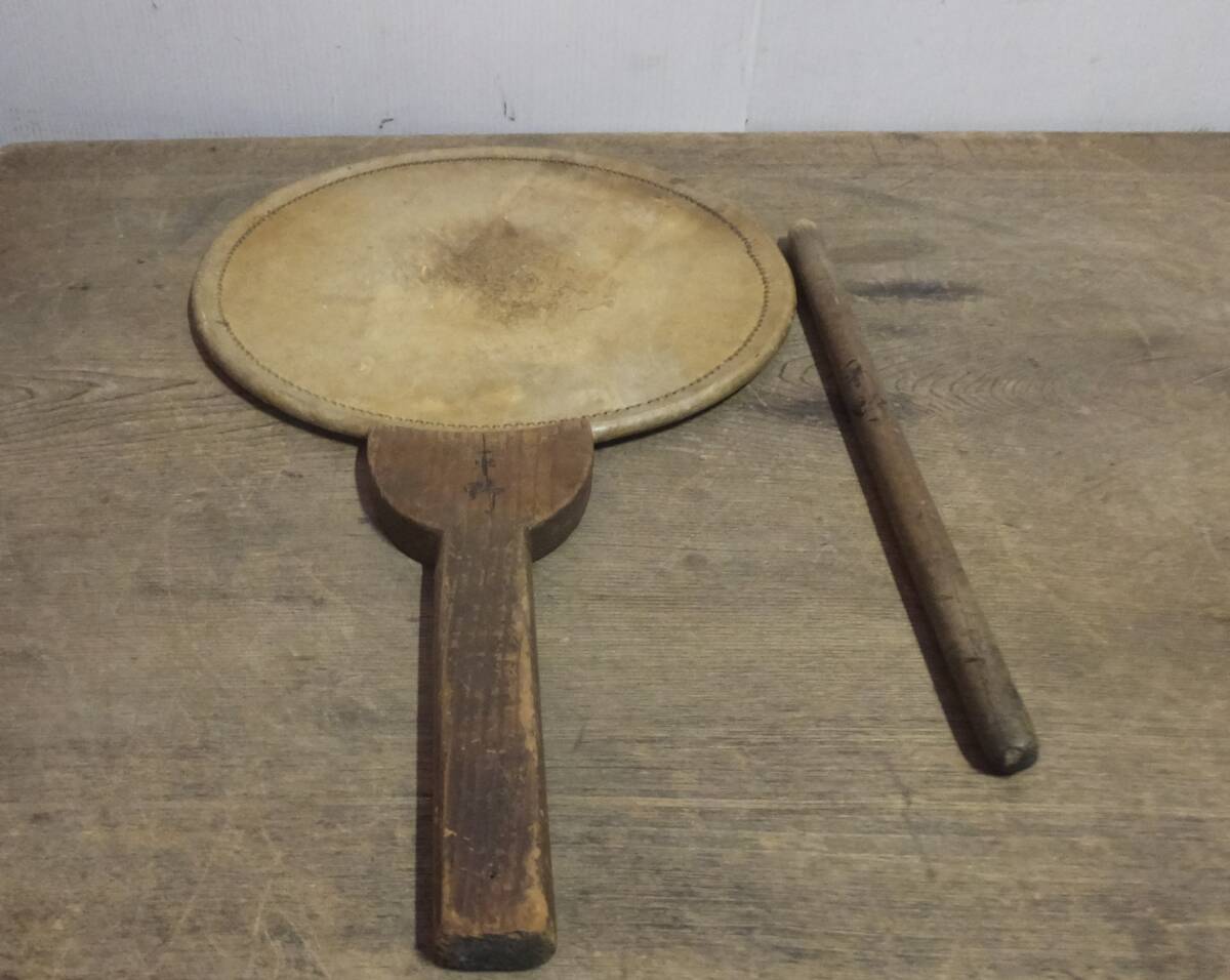 ◆こ-715 和楽器 団扇太鼓 和太鼓 仏具 バチ付 長さ54cm 横31cm 厚さ2cm 重さ500g
