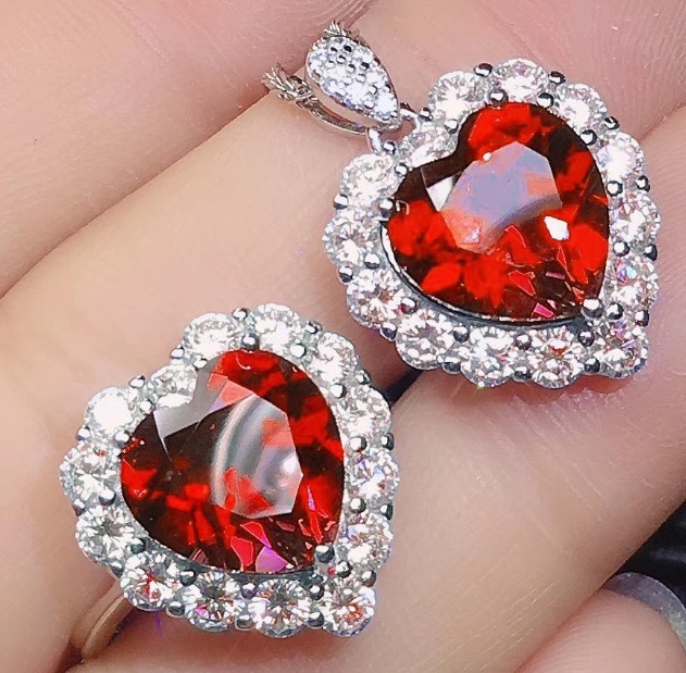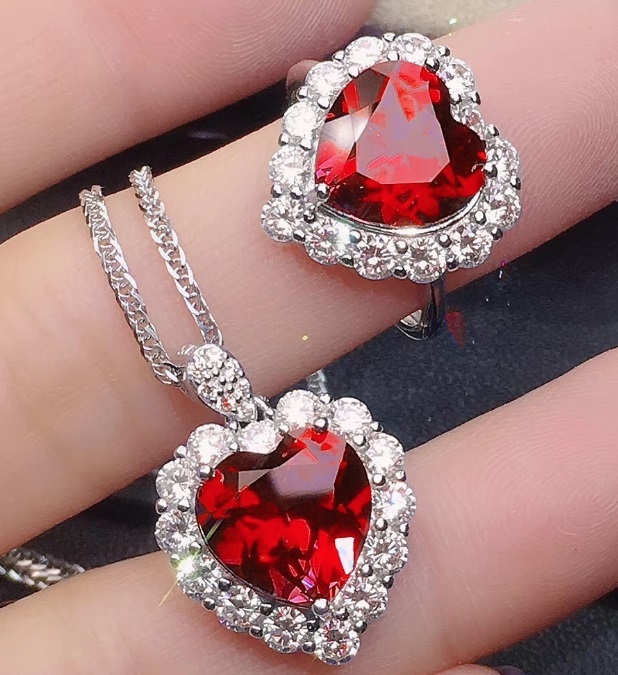高級感 ジュエリー2点 ペンダントトップ リング 大粒ルビー 満々ジルコン ピカピカ 輝く アクセサリー チェーン無し
