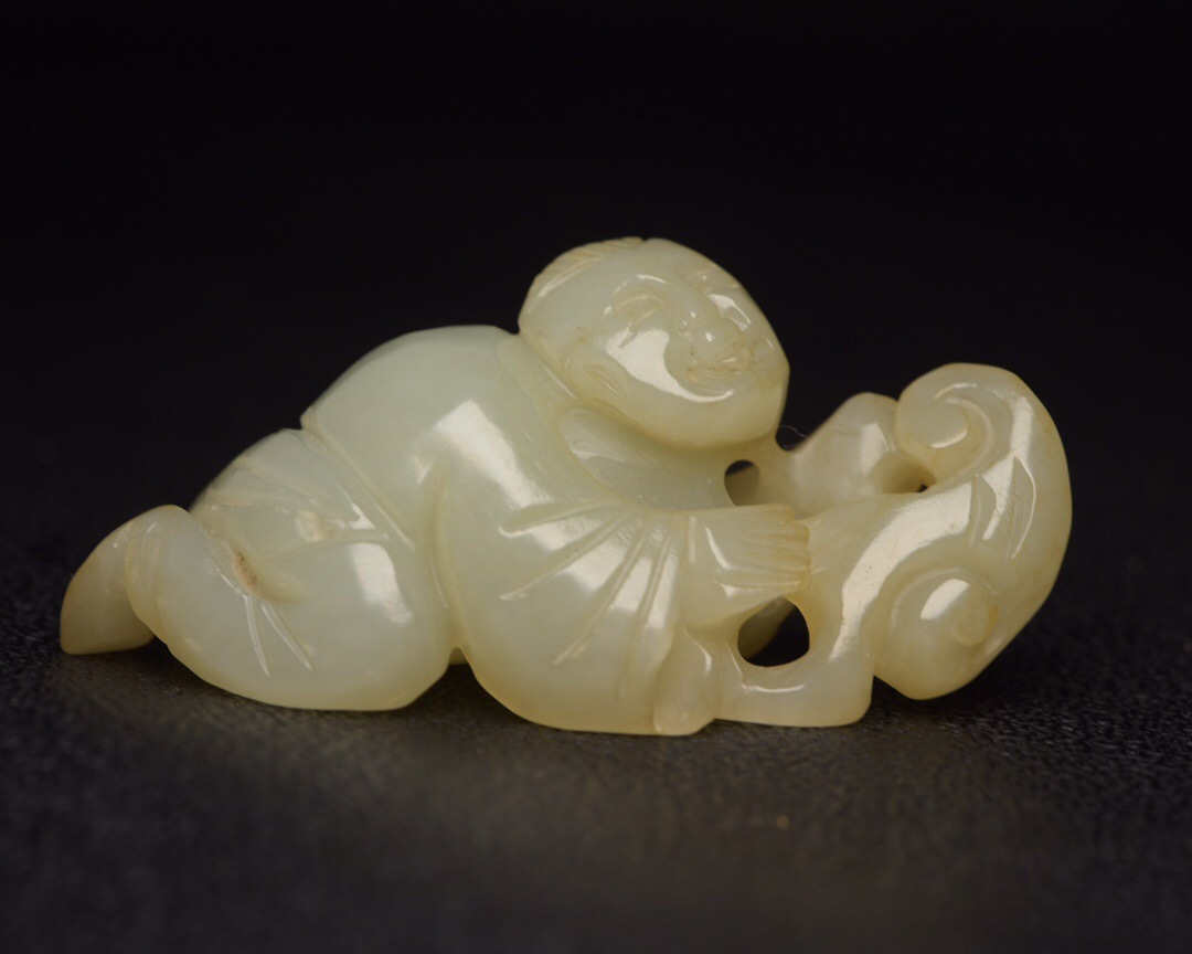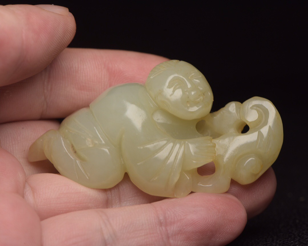 【超珍館蔵】和田玉製 細密彫 如意童子 置物 古賞物 古美術品 稀少珍蔵品