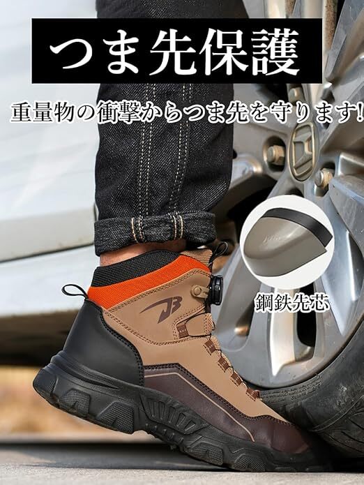 ダイヤル式安全靴 2色 防水 あんぜんぐつ ハイカット 作業ブーツ 鋼製先芯 釘踏み抜き防止 厚底 サイズ:26cm