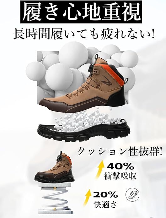 【足首の保護が完璧】つま先部分には高強度の鋼鉄先芯を採用し、危険な作業現場や不慮の衝撃があった場合に、足首をしっかりと保護します。まるで足首にしっかりとした盾を装備したような安心感があります。