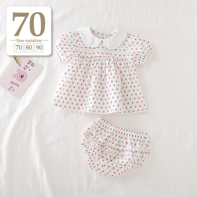新品未使用 70cm さくらんぼ柄〔#BMブルマ付きワンピ〕ベビーパンツ オムツカバー セットアップ ワンピース 半袖 チュニック 丸襟ブラウス