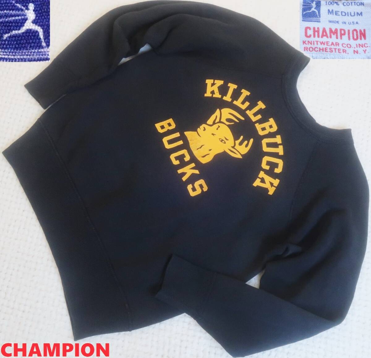古着★チャンピオン CHAMPION★1963~65年代★ランナーズタグ★大文字 ランタグ★美品 ブラック スウェット★3連 プリント 黒 M★852