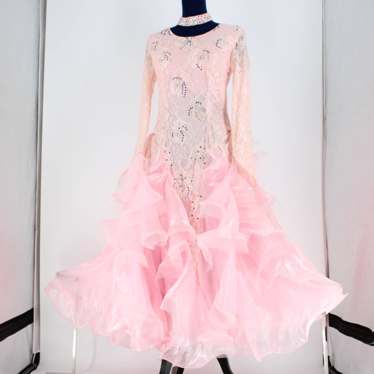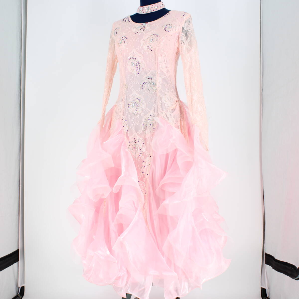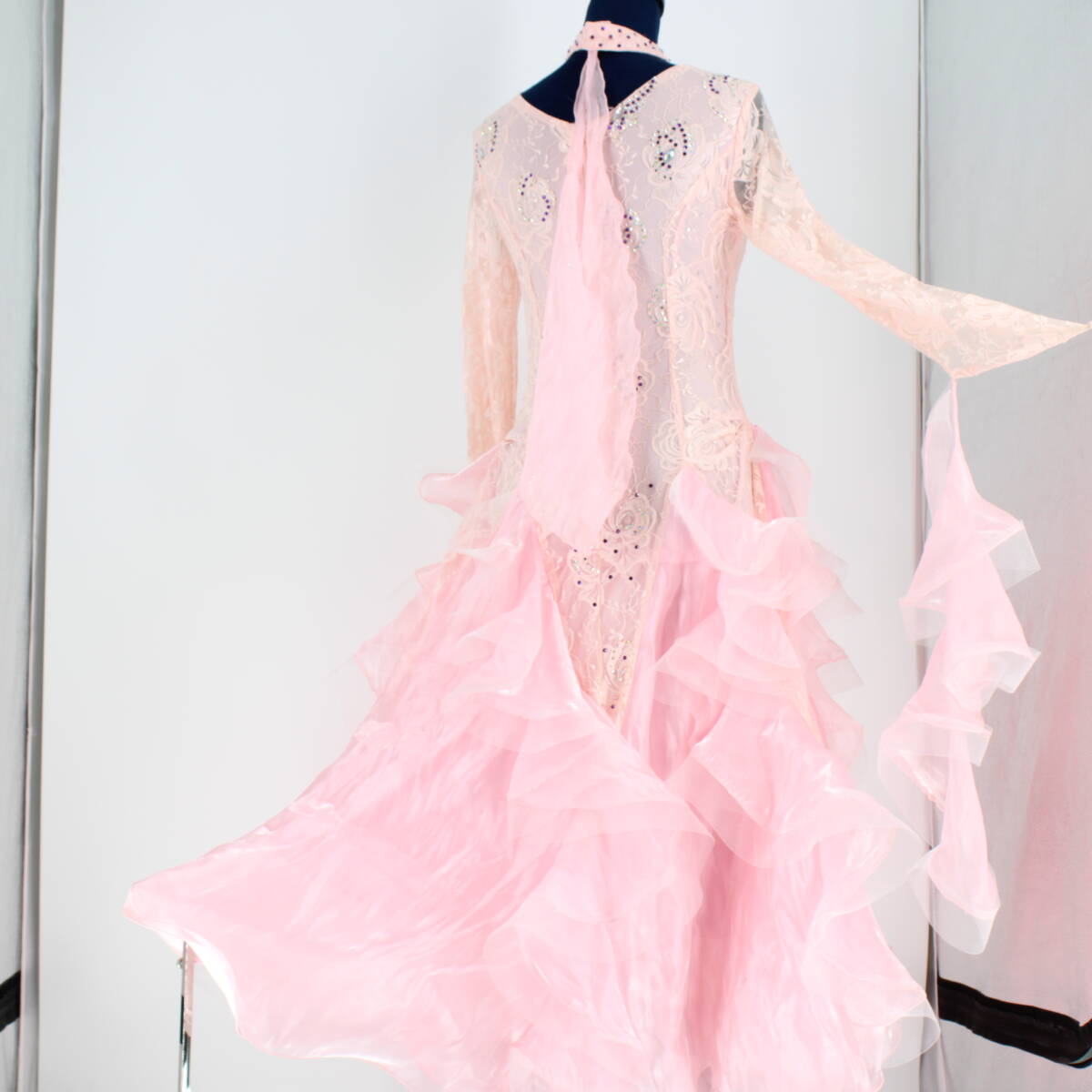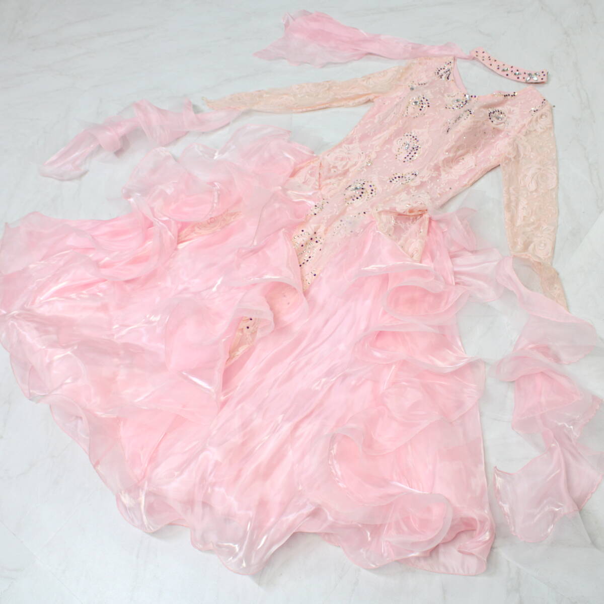 | 商品説明 | 【商品名】社交ダンス衣装 ワンピース ドレス 【サイズ】表記無し 平置き実測:総丈約124cm(裾~肩部まで)、身幅約43cm、ウエスト約31cm~ ※実測の為、多少の誤差はご容赦願います 【仕様】 ・背面ファスナー仕様 ・レオタード無し ・上半身のみ若干の伸縮性有り ・胸パッド有り ・肩パッド無し ------------------------------------ 【ポイント】 ▽明るいピンクカラーのドレス ▽段々フリルのかわいいデザイン ▽軽い素材ふんわり広がるスカート ------------------------------------ 【撮影時使用トルソー:女性用トルソー9号(一般的に使用されるサイズです)】 トルソーサイズ詳細 肩幅約37cm、バスト約88cm、ウエスト約66cm、ヒップ約89cm |