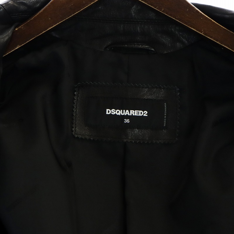 ディースクエアード DSQUARED2 ライダース レザージャケット 長袖 ジップアップ 36 XS 黒 ブラック S75BN0629 ■GY19 /MQ レディース