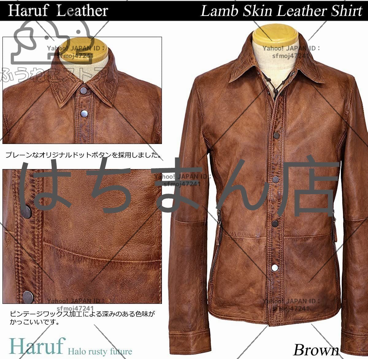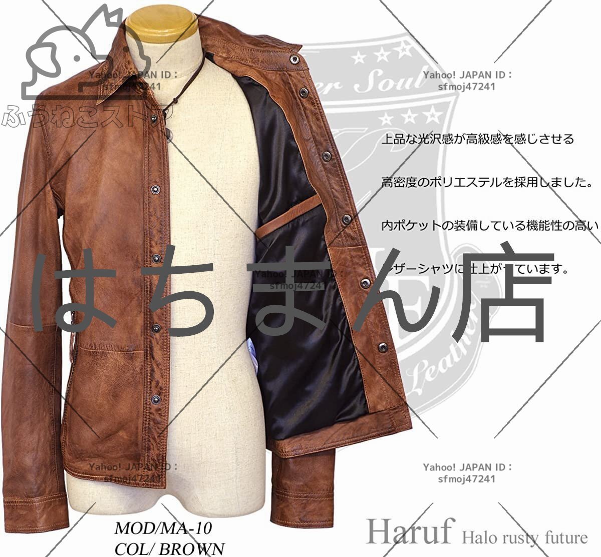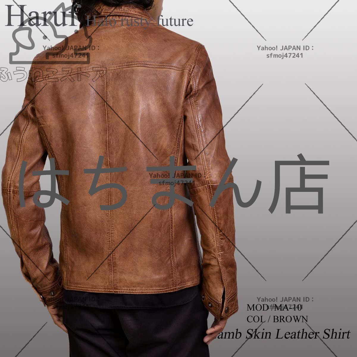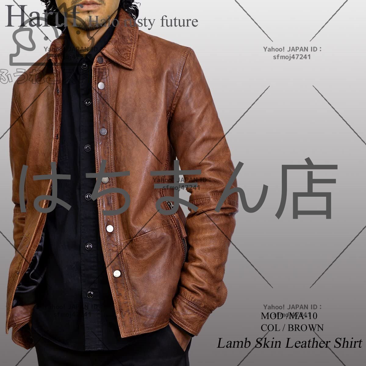 レザージャケット 革ジャン メンズ 本革 レザーシャツジャケット シングル ライダースジャケット ラムレザー 秋冬 春 ブラウン 茶 M-3XL
