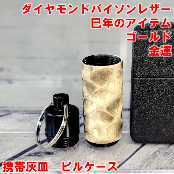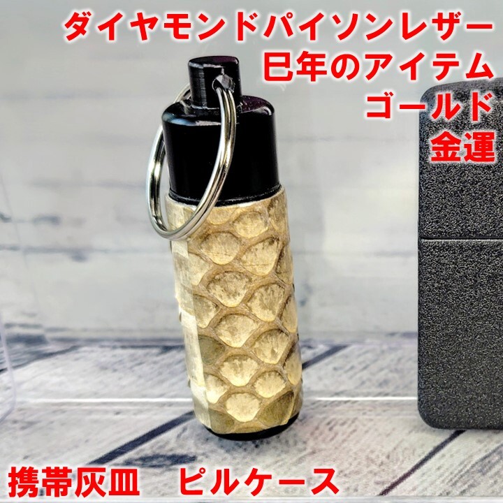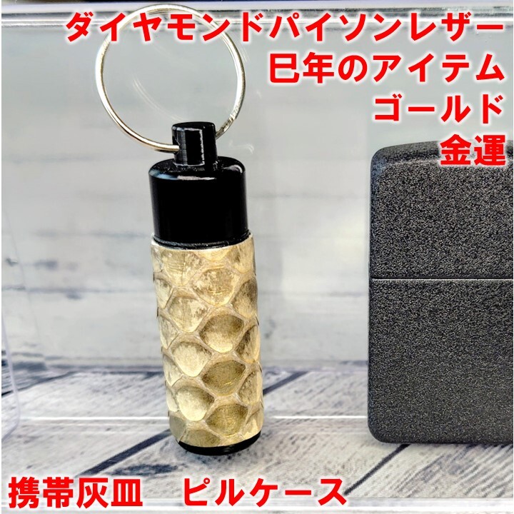 携帯灰皿 ピルケース ダイヤモンドパイソン 小物入れ パイソンレザー ヘビ革 蛇革 本皮 本革 金運アップ 巳年のアイテム 黒