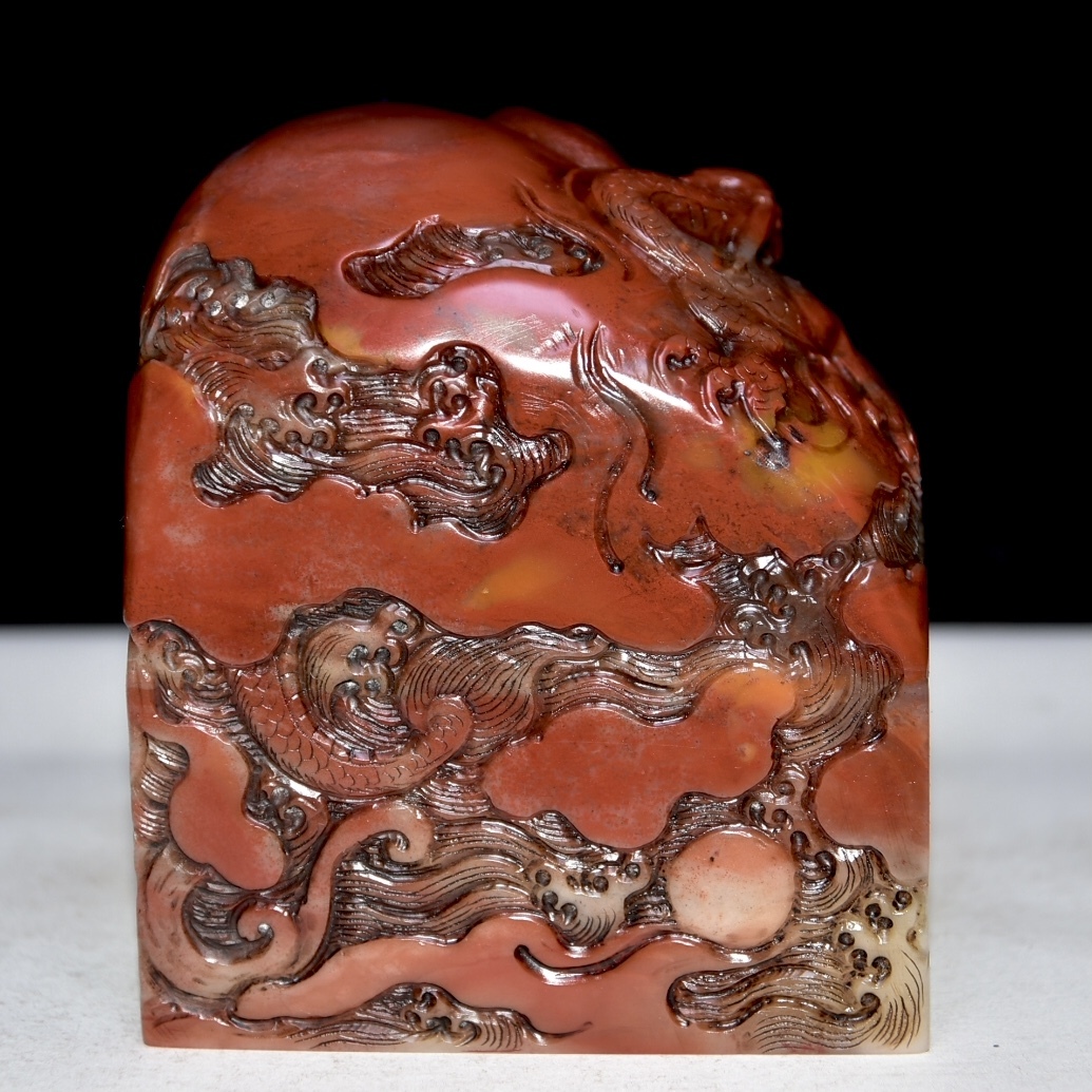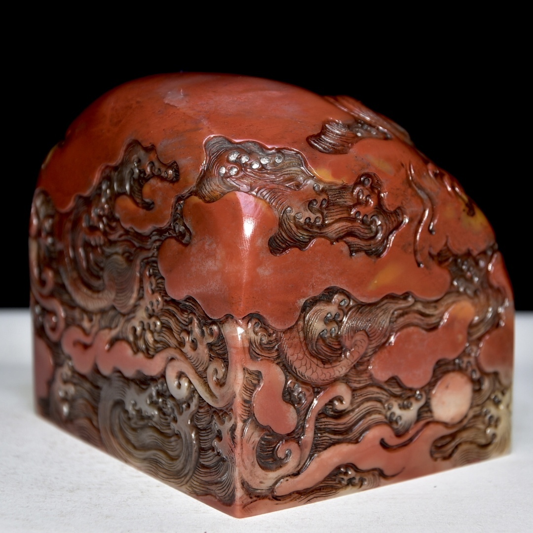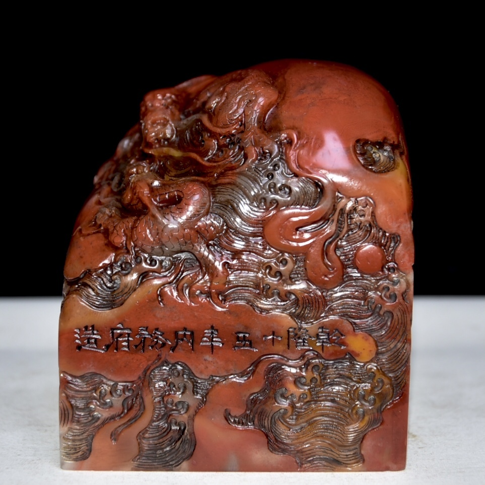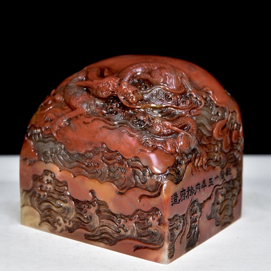 唐物 乾隆十五年内務府造弁處造 寿山石 芙蓉石 龍紋 印章 原石原色 置物 天然石 手彫 篆刻 古印材 中国美術品 時代物 D63
