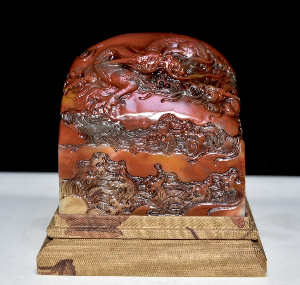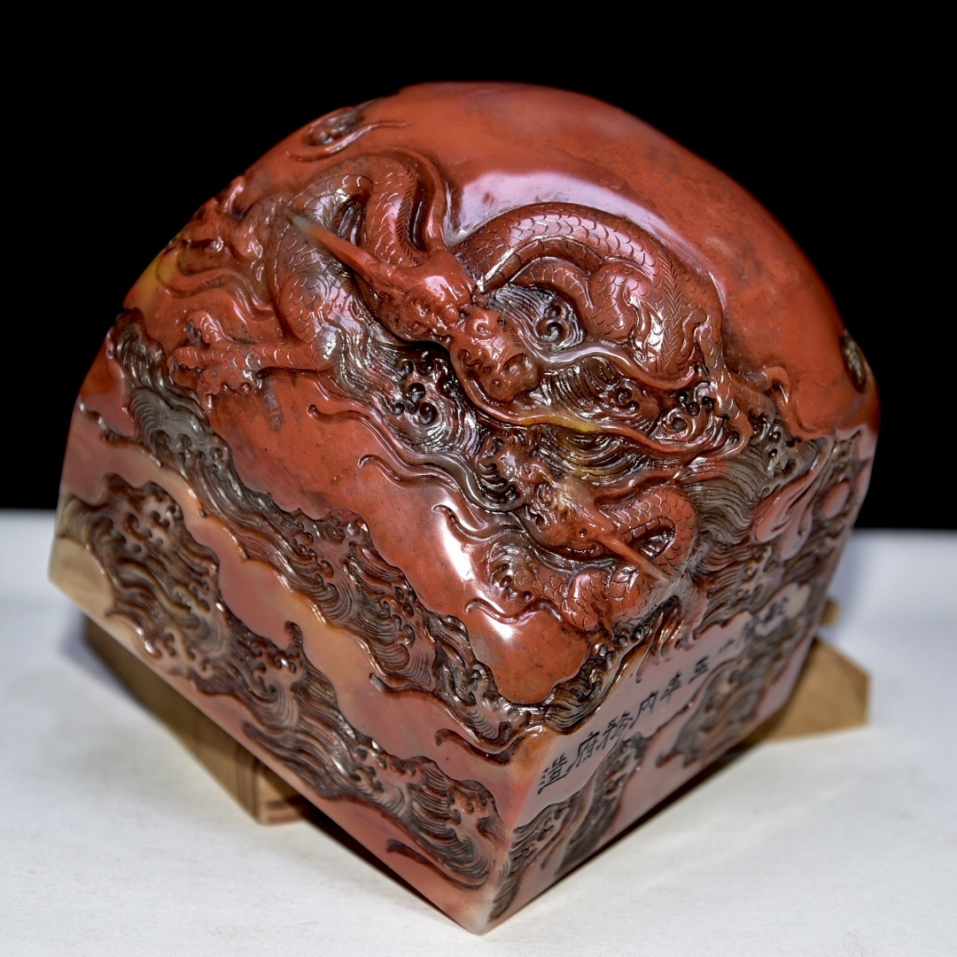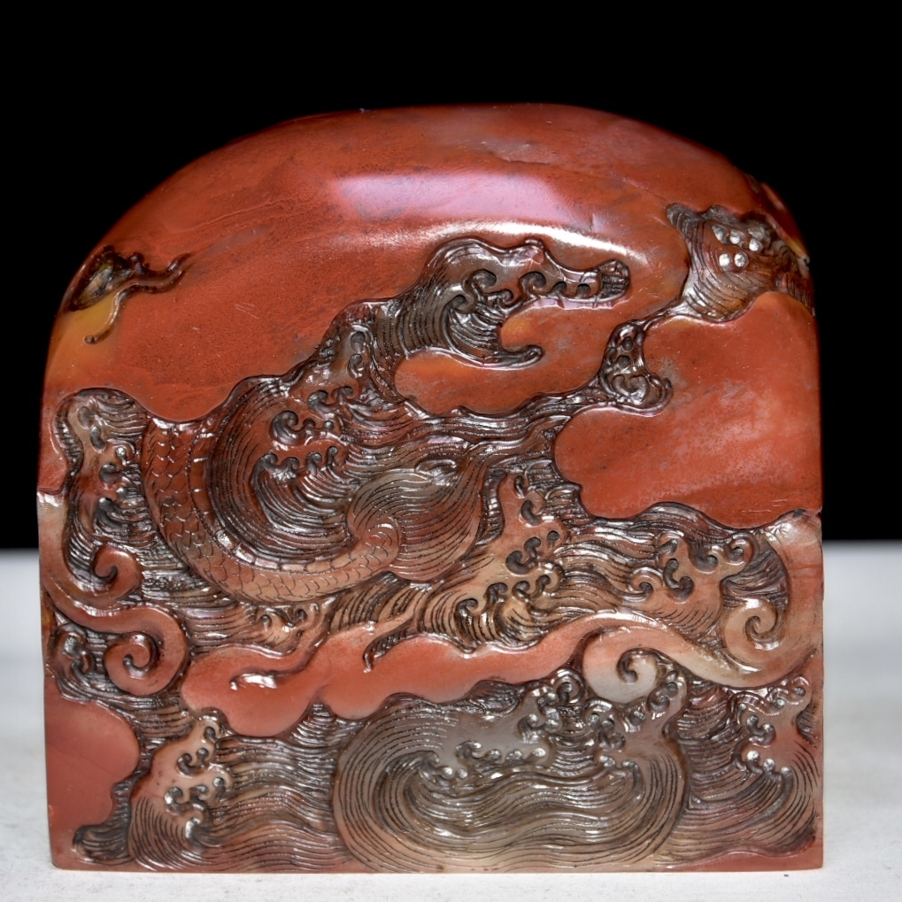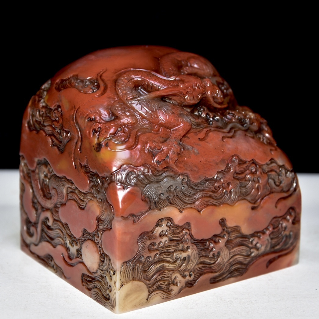 唐物 乾隆十五年内務府造弁處造 寿山石 芙蓉石 龍紋 印章 原石原色 置物 天然石 手彫 篆刻 古印材 中国美術品 時代物 D63