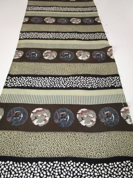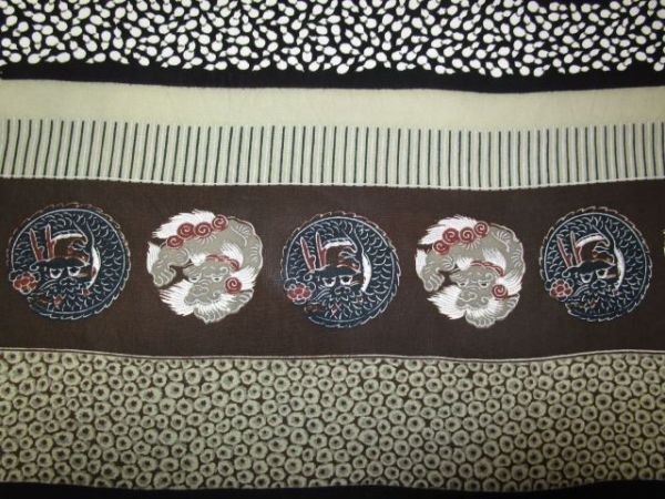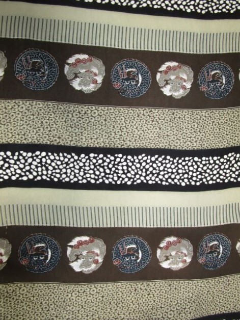 男6-34★かわいい!獅子と龍*人絹*羽裏*古布はぎれ★一閑張り/掛軸/襖絵/屏風絵/アンティーク