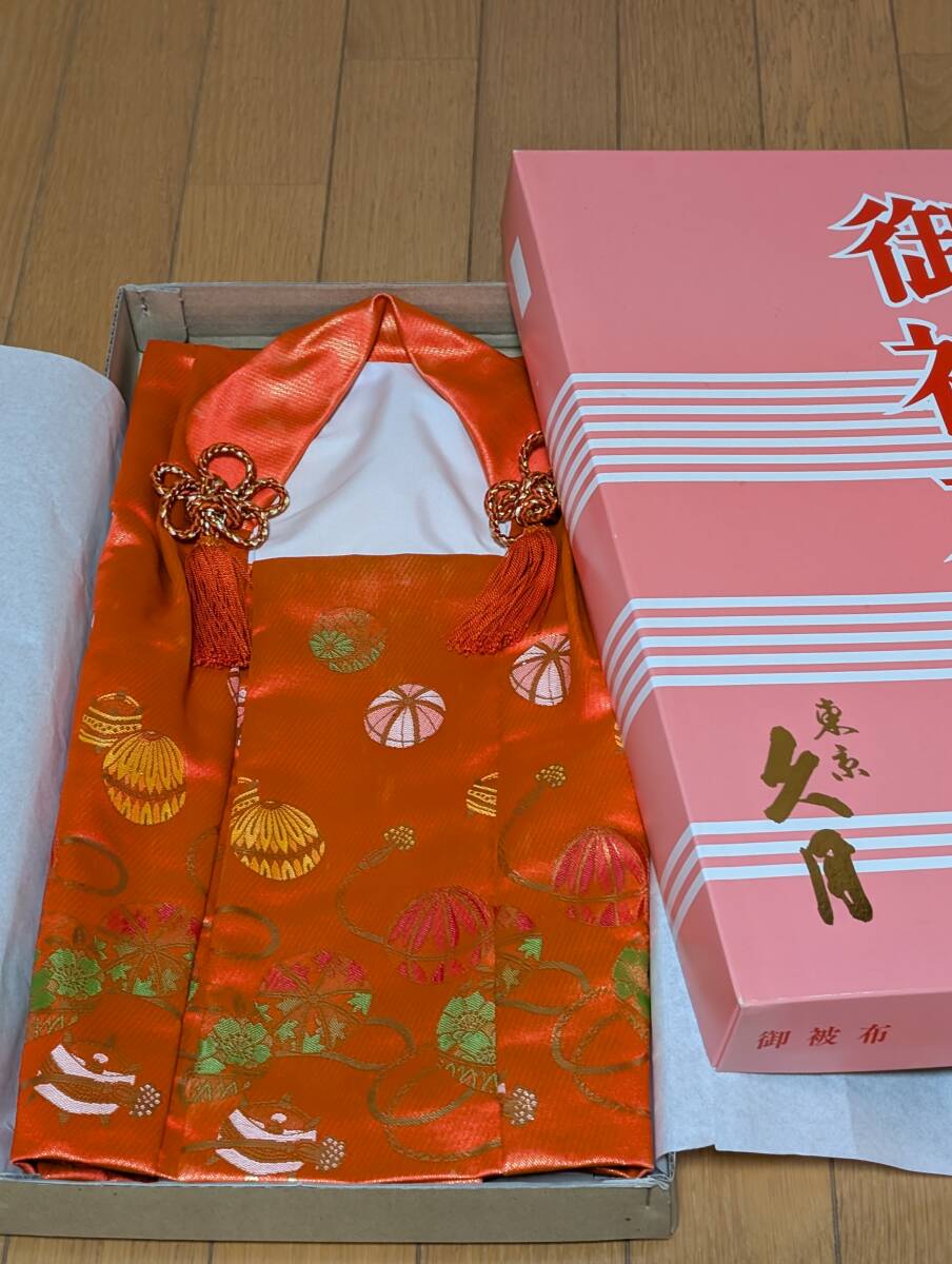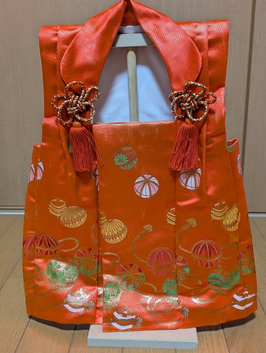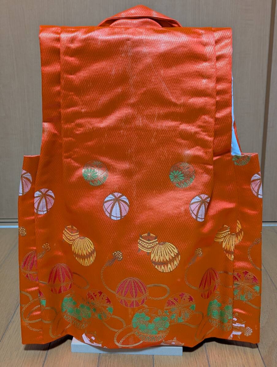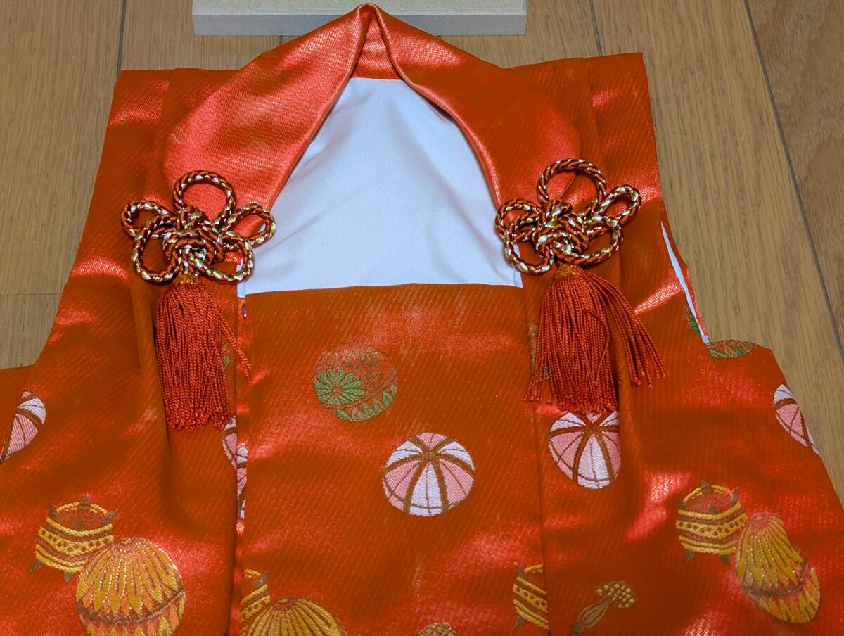 初節句 ひな祭り 七五三 人形の久月 御被布 お祝い着 3歳女の子 子供着物 オレンジ 定番柄 飾り台付き