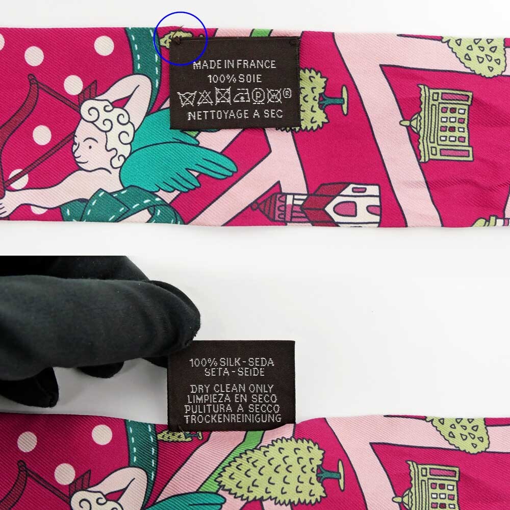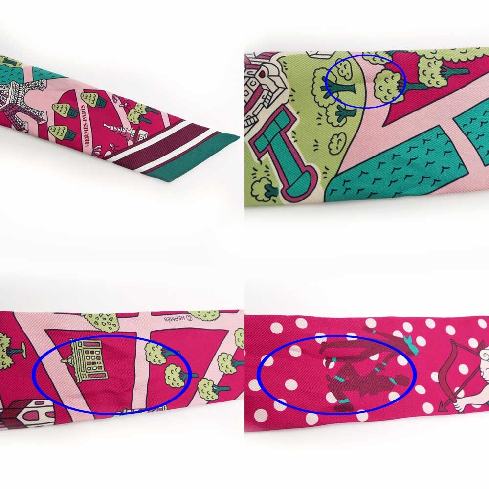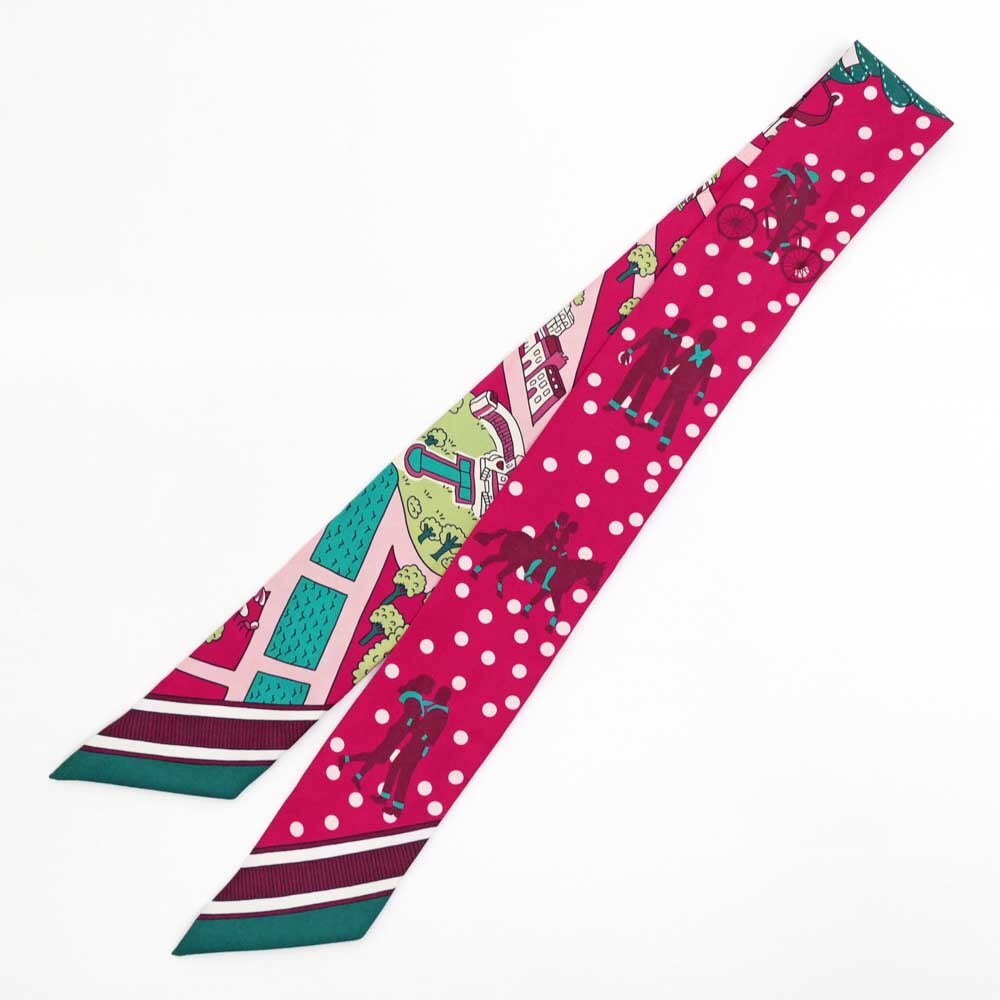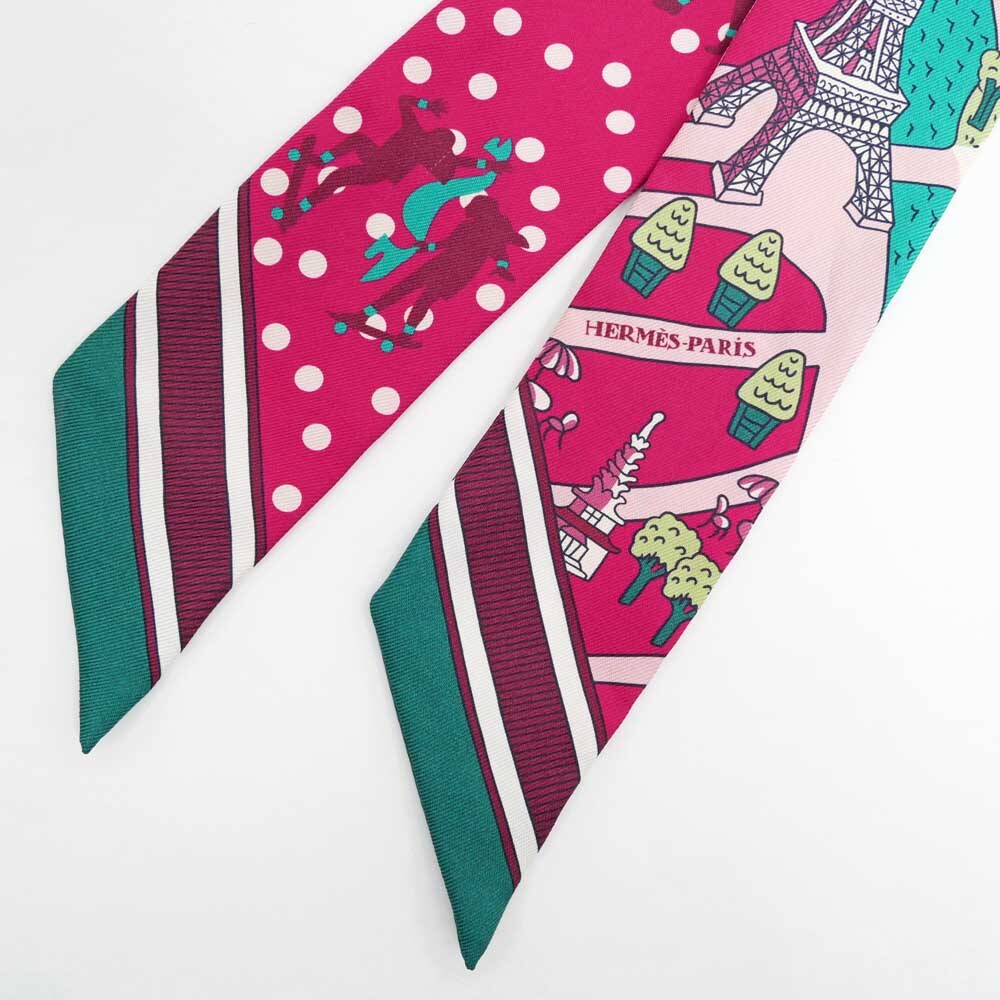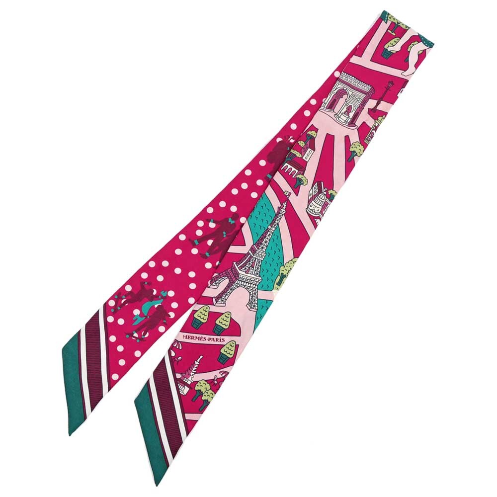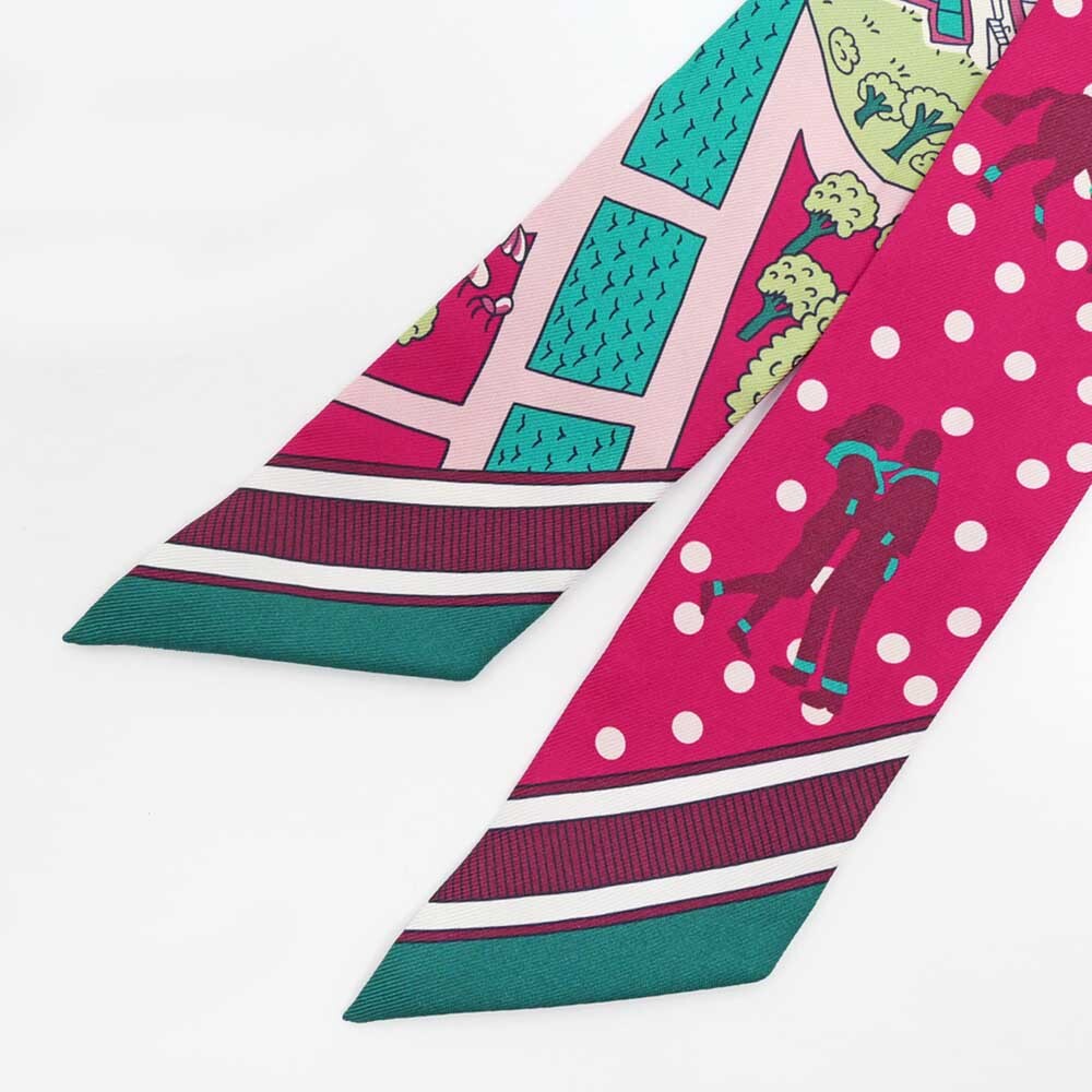 【名東】エルメス ツイリー 新パリの恋人たち ピンク系 グリーン系 シルク スカーフ 小物