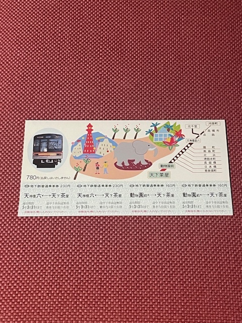 地下鉄堺筋線 動物園前〜天下茶屋 開通記念乗車券 (管理番号102-53)