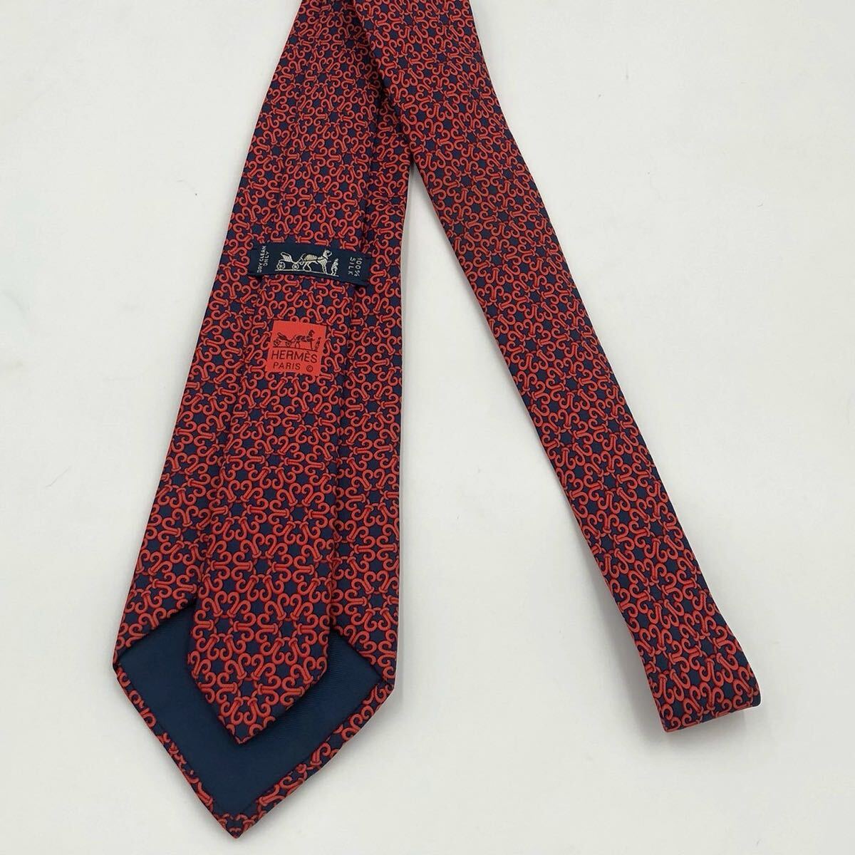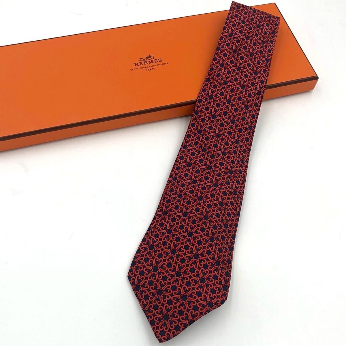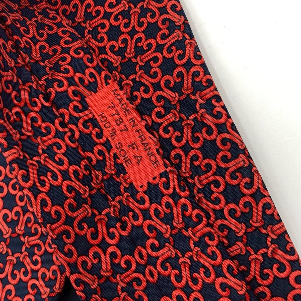 HERMES エルメス ネクタイ タイ シルク 100% カジュアル フォーマル ビジネス フランス製 赤 レッド 総柄 7787