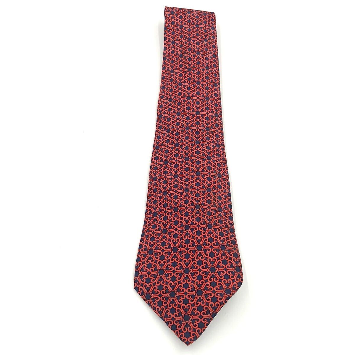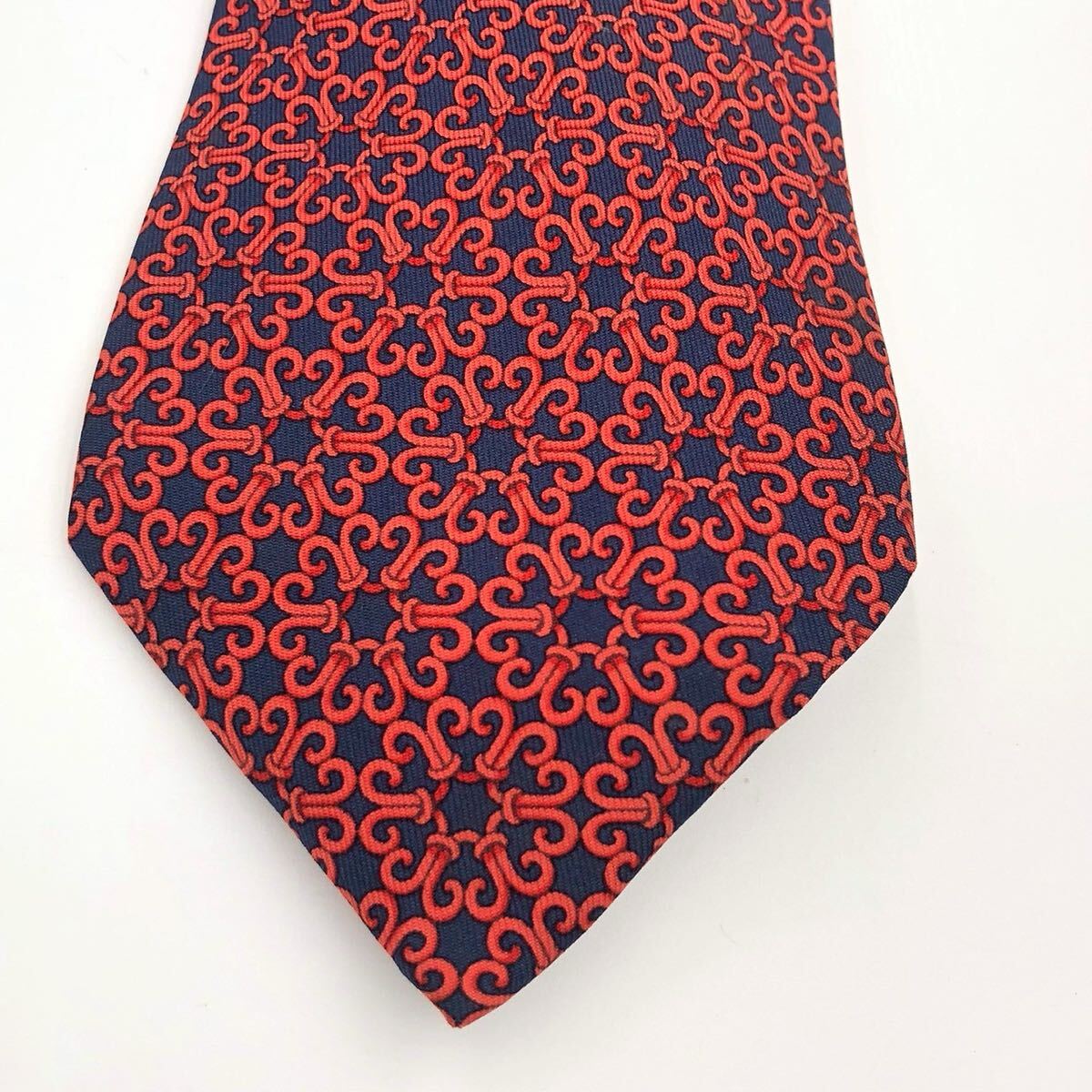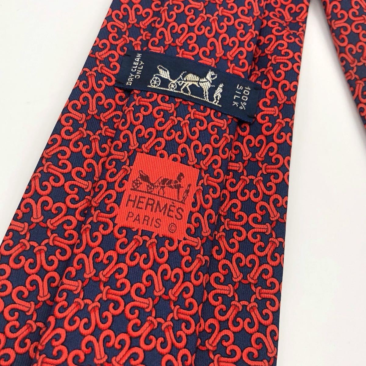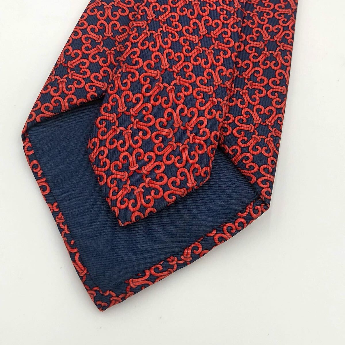 HERMES エルメス ネクタイ タイ シルク 100% カジュアル フォーマル ビジネス フランス製 赤 レッド 総柄 7787