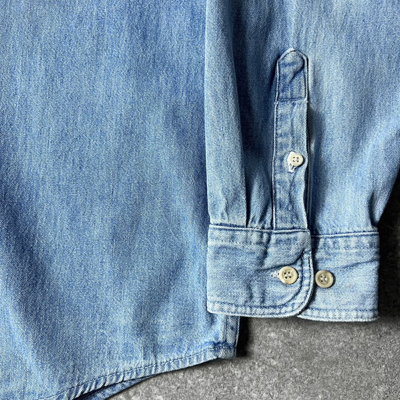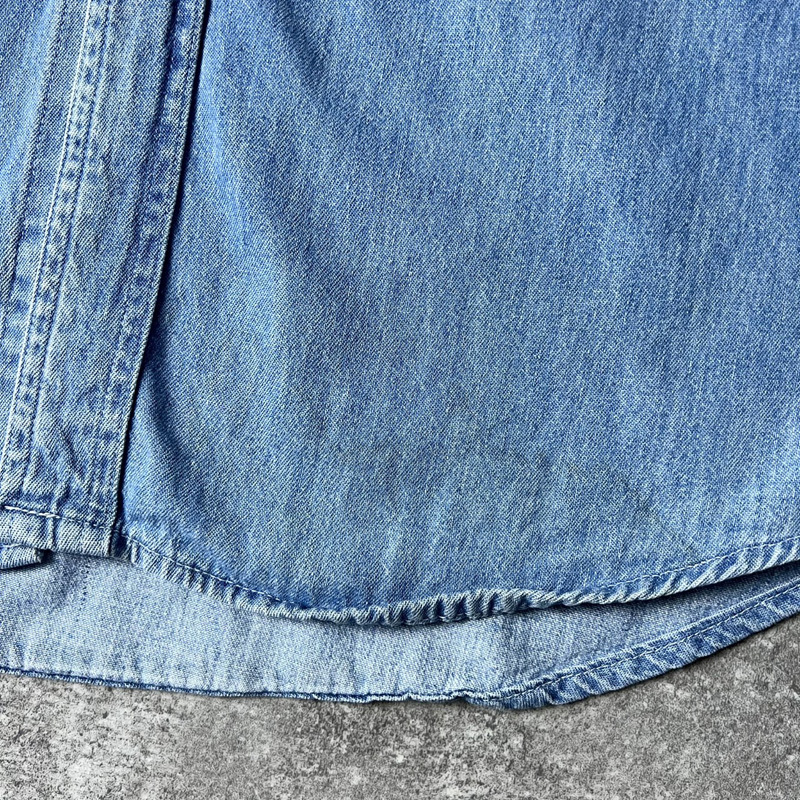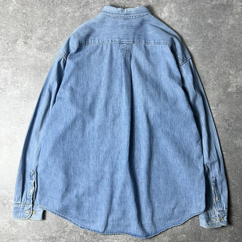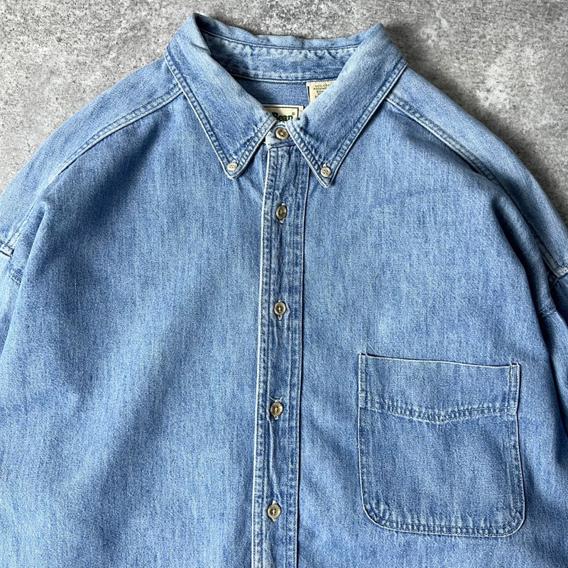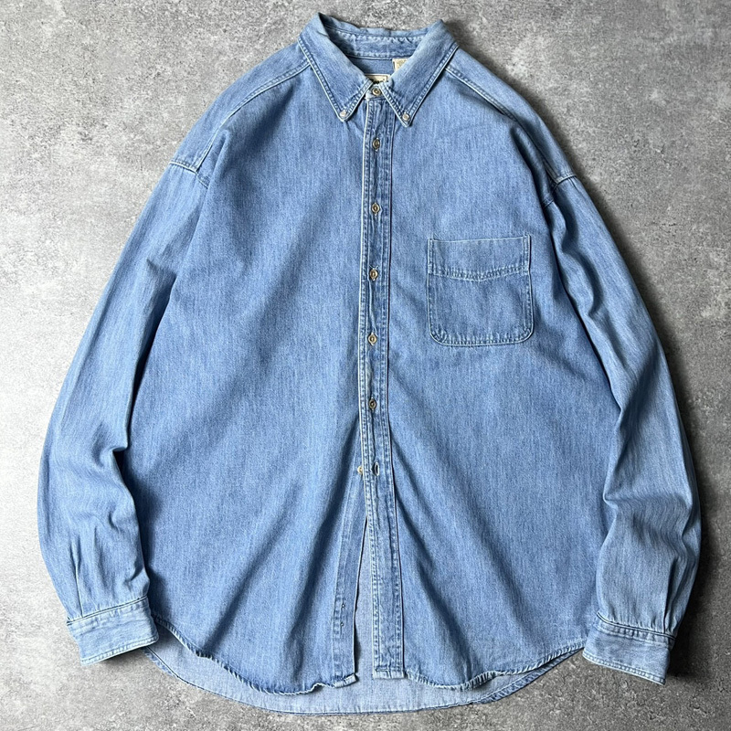 90s LLBean コットン デニム 長袖 ボタンダウン シャツ XL / 90年代 オールド エルエルビーン 無地 LLビーン