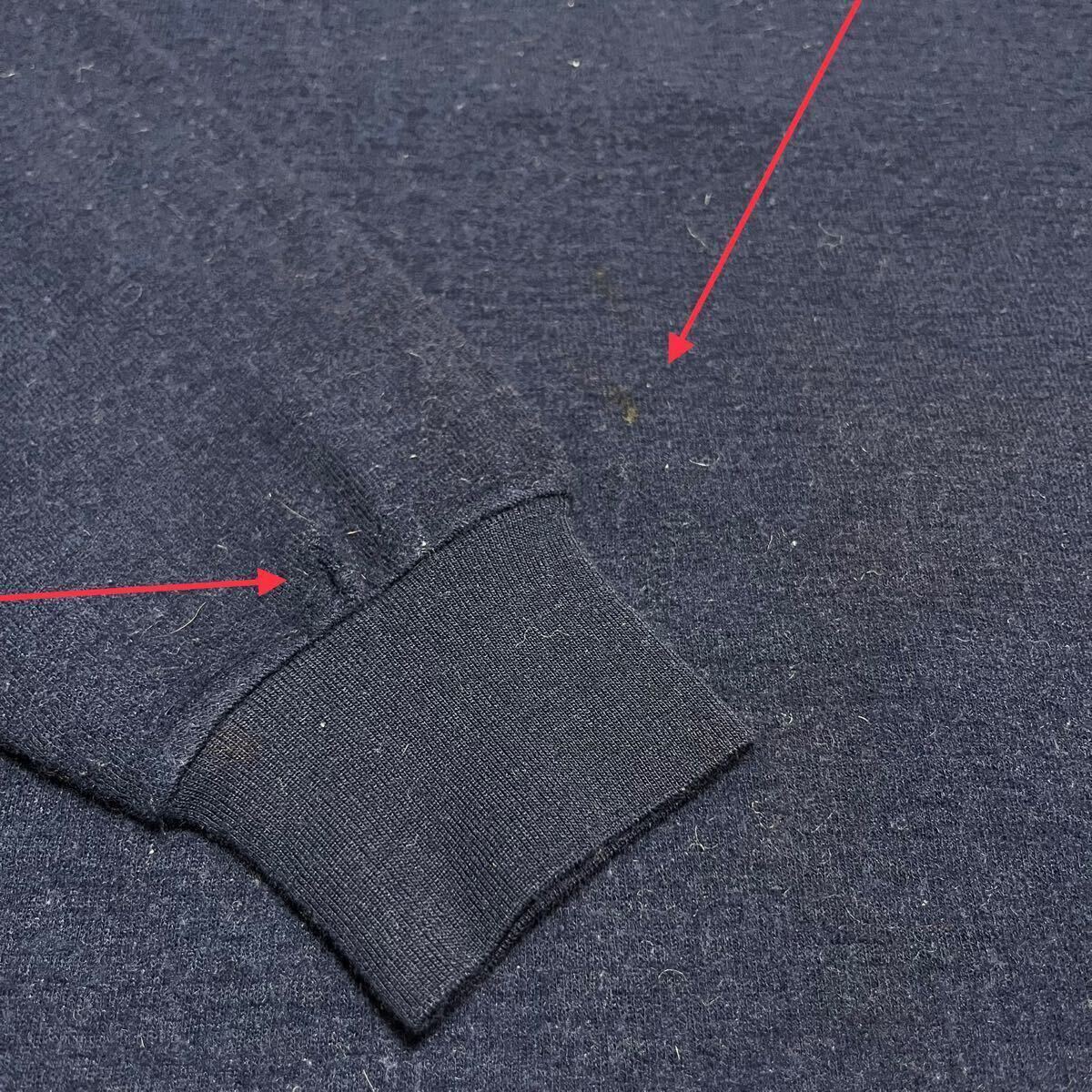 背中に汚れあります。穴は空いてませんがニットが少し薄くなっている箇所が点在しています。