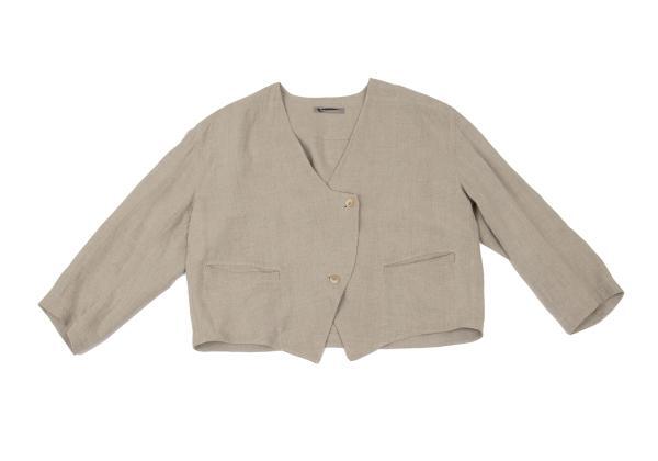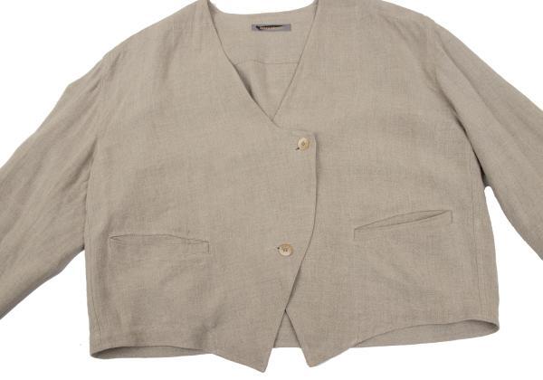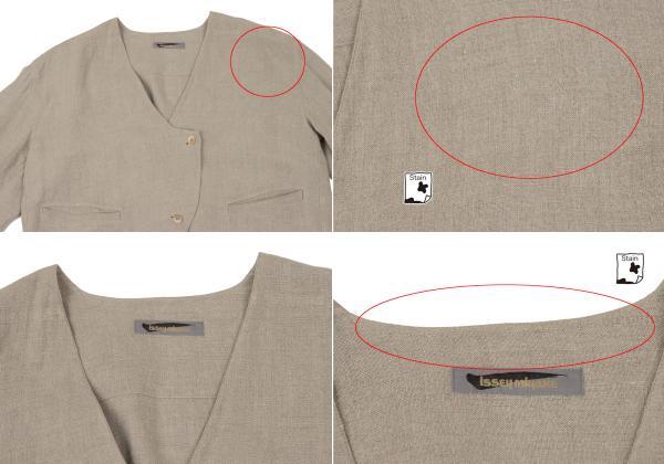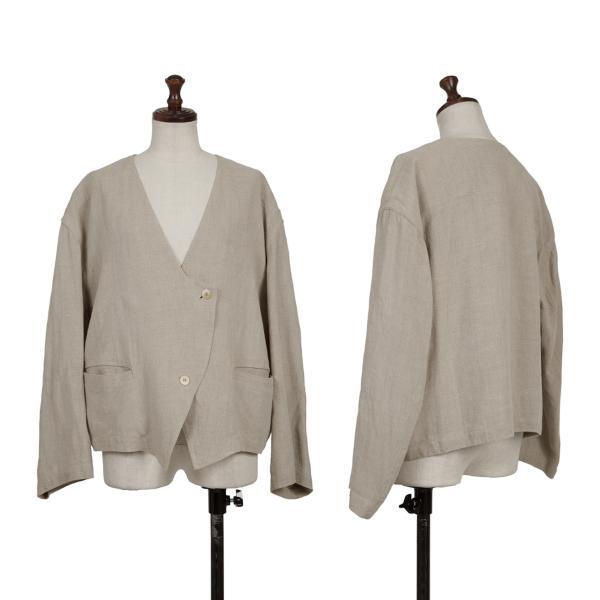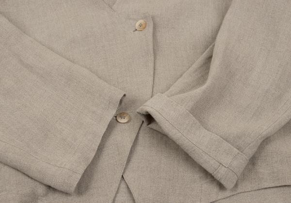 イッセイミヤケISSEY MIYAKE リネンノーカラージャケット ベージュ9 |