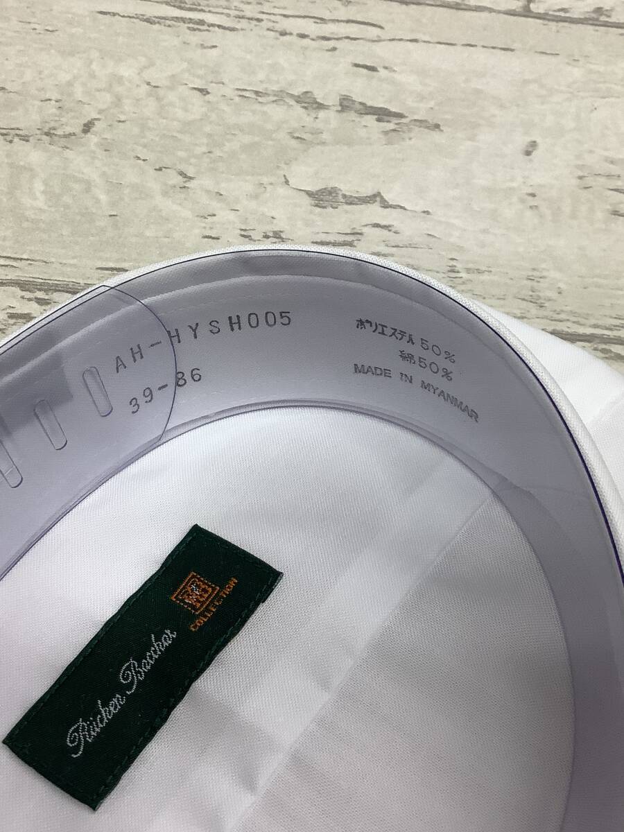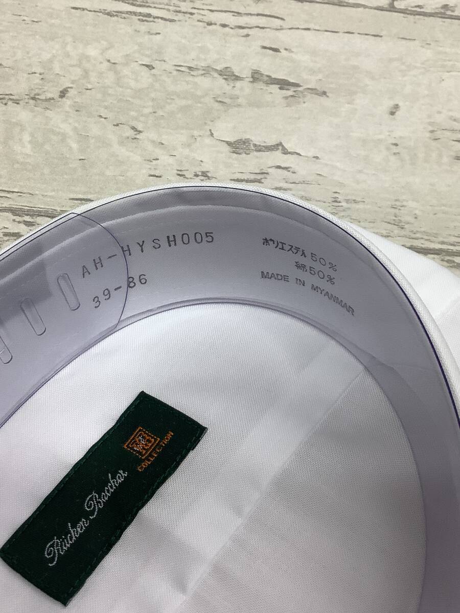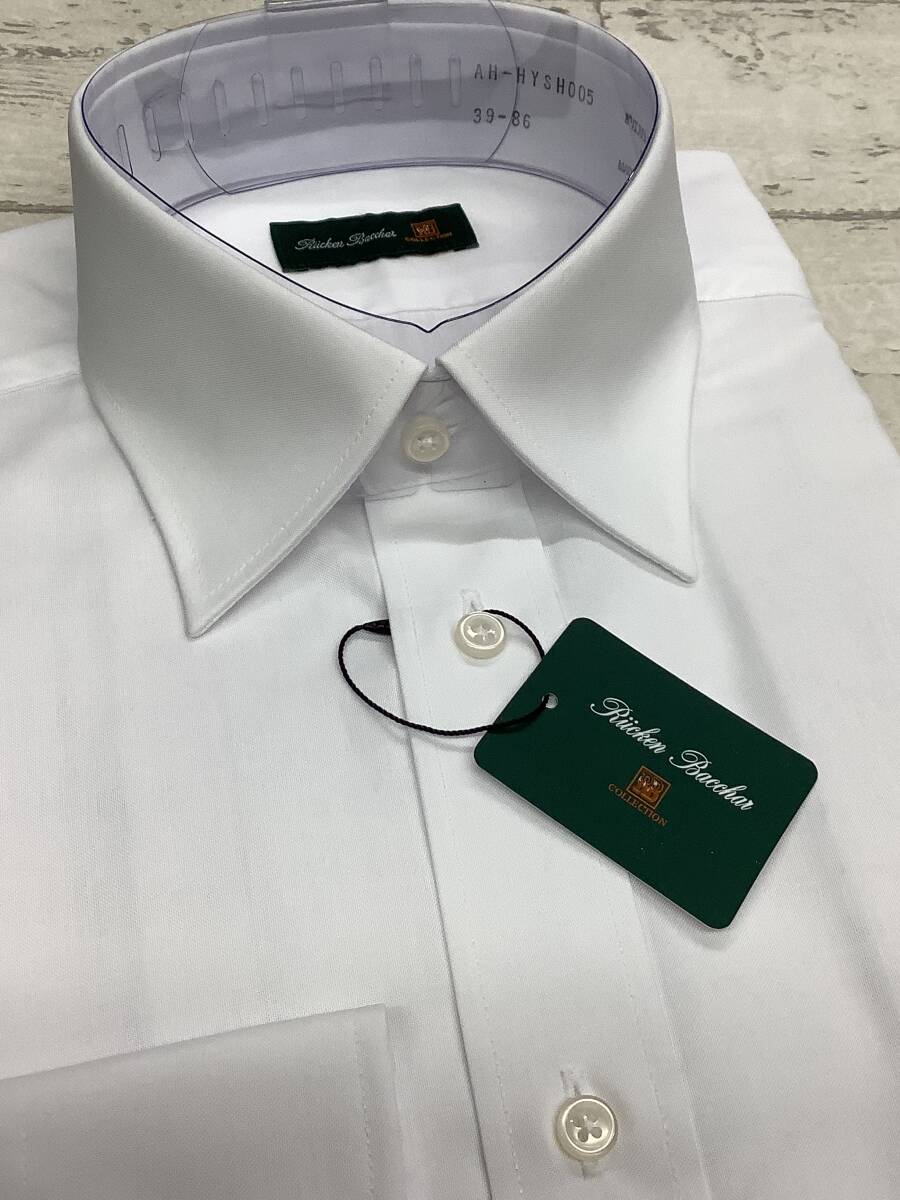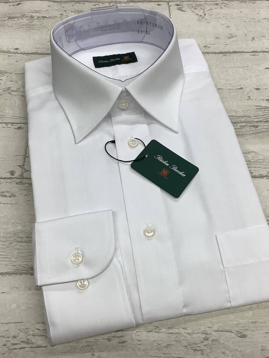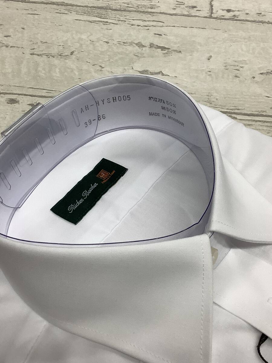 39-86 新品未使用 Mサイズ 白ブロード生地カッターシャツ 高級レギュラーワイシャツ 形態安定 冠婚葬祭
