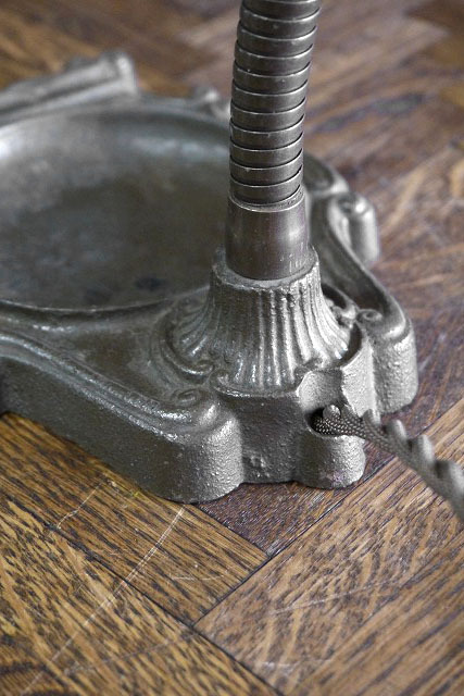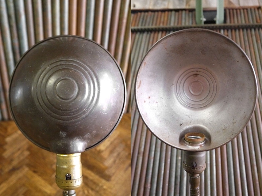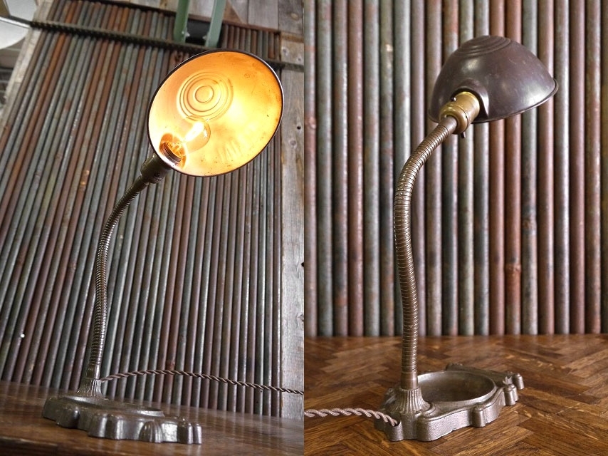 | 商品説明 岡山STAGEより出品します。アメリカで買い付けたアンティークのデスクランプです。アイアンベースにグースネック式でメタルシェードとの相性が良く無骨なシルエットが魅力です。消灯時にも雰囲気がありますのでお部屋からショップまで幅広くおすすめです。通常コンセントで電球は付属しませんが市販のE26mm口径の一般的なタイプですのでご用意ください。スイッチ付きのソケットになります。状態ですが、経年による金属劣化や錆、塗装の剥がれ、小傷や擦れ、汚れ、くすみ、シェードに凹み、全体的に歪み等の使用感はございますが雰囲気を損なうようなダメージはなくアンティークならではの良い状態かと思います。あくまでアンティークになりますのでご理解いただける方のご購入をよろしくお願いいたします。 ※古いランプ全般ですが角度調節の際はネック部分を持って調整してください。 サイズ トップ画像で高約42cm、ベース横幅約13cm、ベース奥行き約20cm、シェード直径約17cmです。 予定発送方法 保障の利く佐川急便の元払い100cmサイズ料金で行います。 コメント 店頭にも出しています。タッチの差で売れた場合はご了承下さい。■落札後の連絡及びご質問の返答は基本的に午前10時~午後6時までとさせて頂きます。毎週水、木曜日、年末年始や時間外でのご連絡は休み明け及び翌日のご連絡となりますので予めご了承下さい。 STAGEホームページ https://stage-stage.ocnk.net// |