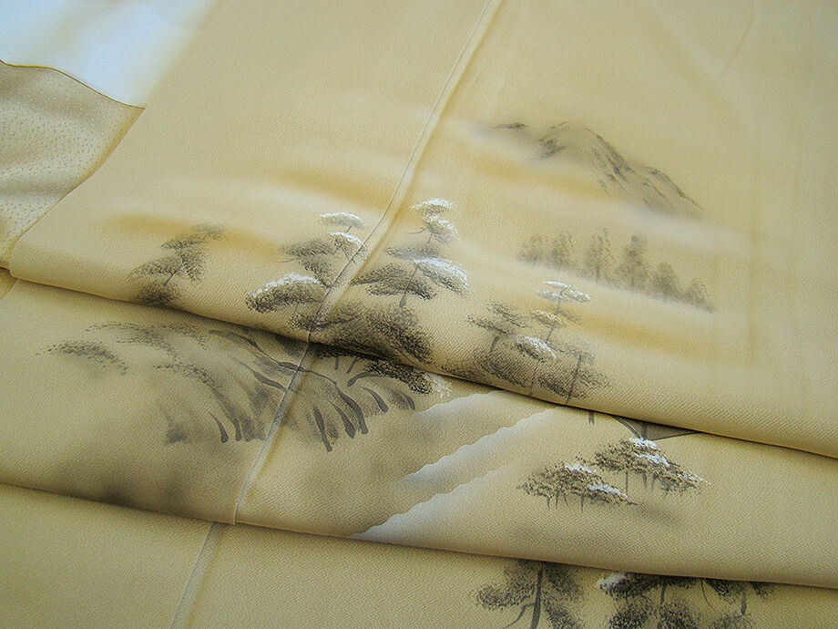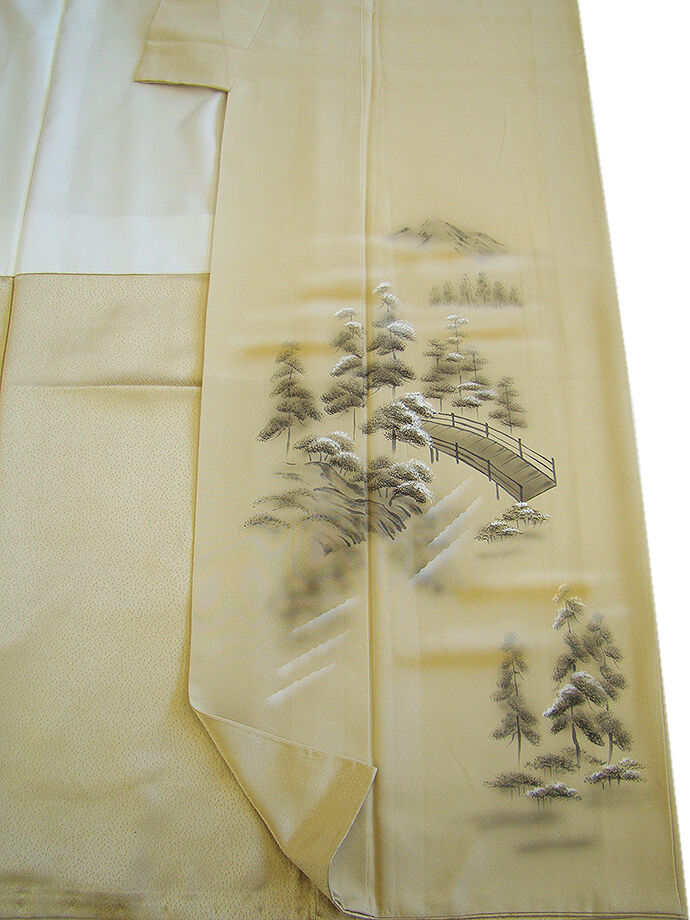 | 商品説明 | こちらのお品は「袷」ですので10月から5月までお召頂ければと思います。 とてもしなやかで柔らかな手触りの着心地良い重めの上質な極上ちりめん地の生地、 落ち着きある蒸栗色地に金茶色ぼかしに黒、鼠、白色等の立木や風景柄の染柄、 気品に満ち溢れた彩りが正統派のお着物として一枚は欲しい逸品の素敵なお着物です。 八掛は光沢ある濃い共色(正絹)、幅広い年代の方にお召頂けます。 |