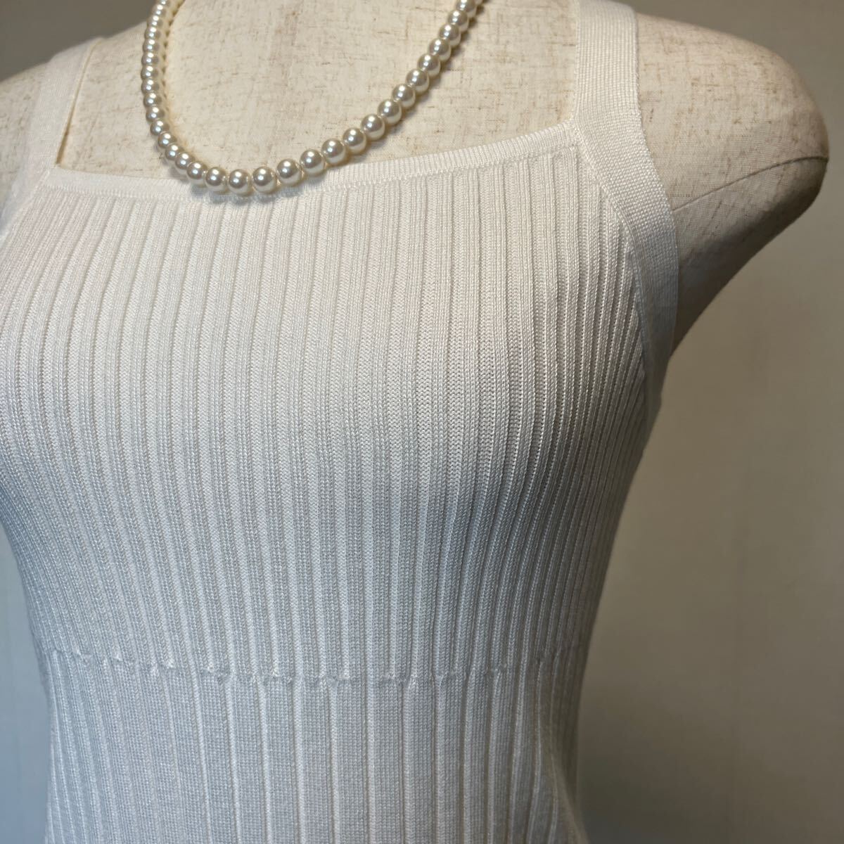 6-7新品カシュクールショートスリーブリブニットXキャミソールリブニットアンサンブル ツインレイヤードセットアップオフホワイト9号M