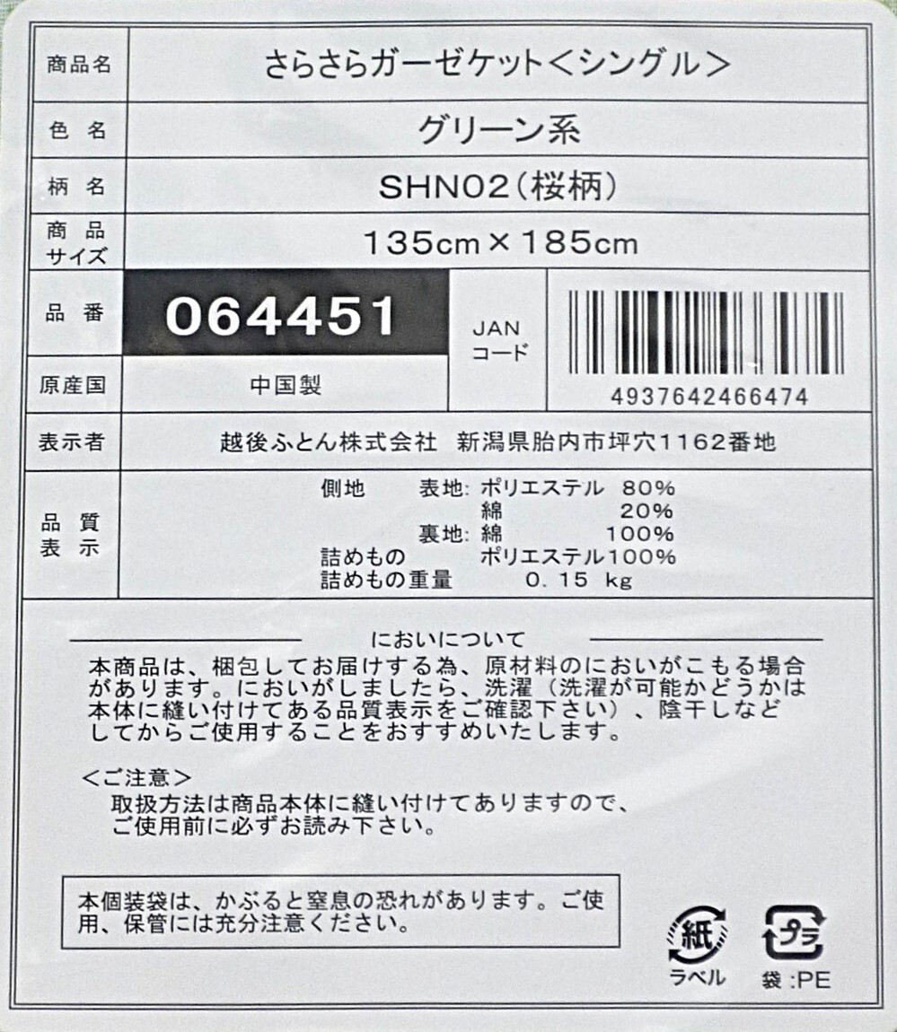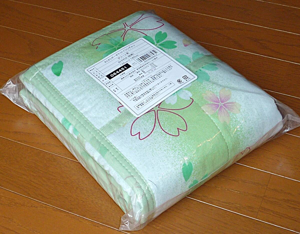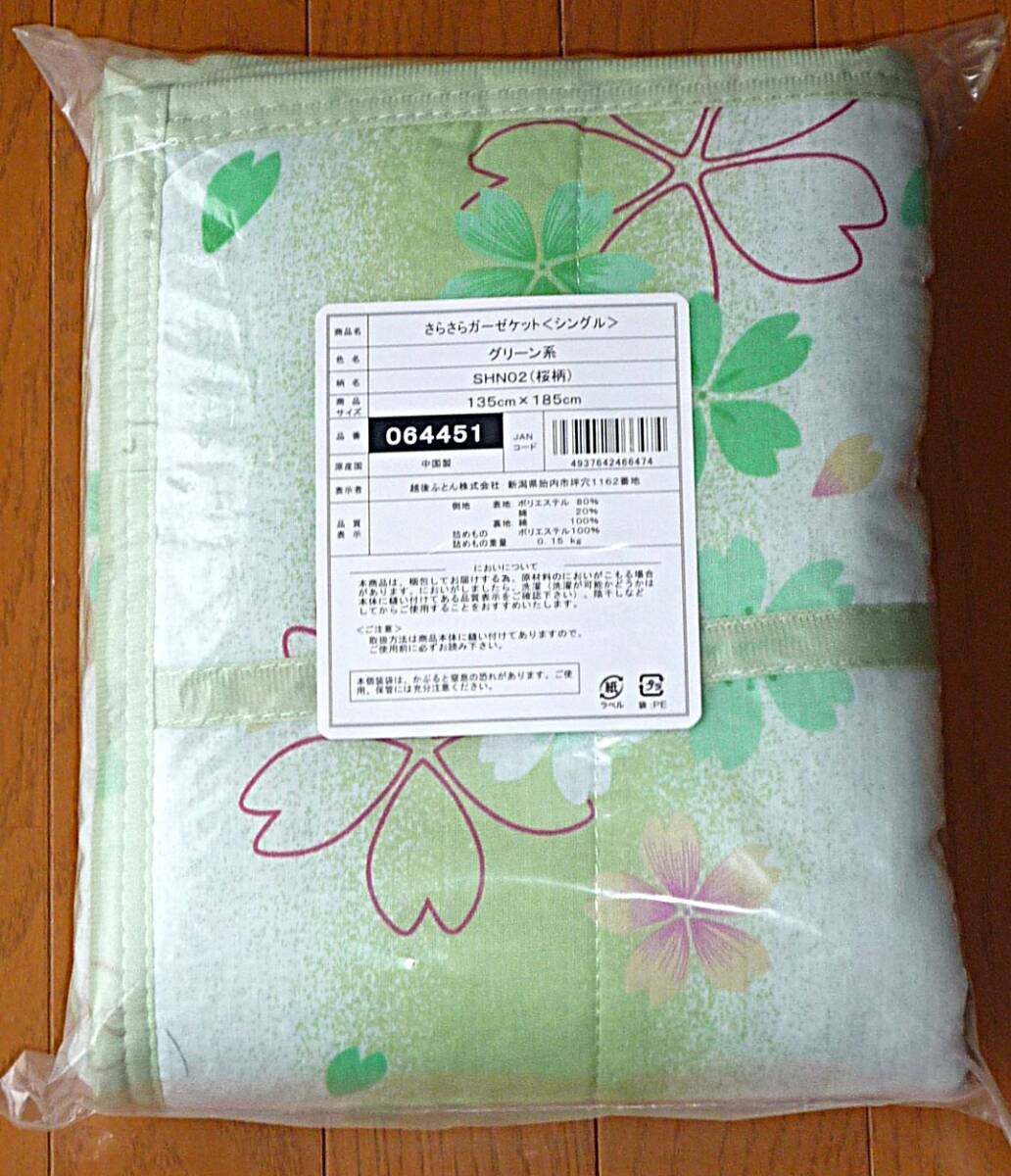さらさらガーゼケット シングルサイズ゛135×185cm グリーン系 桜柄 未使用