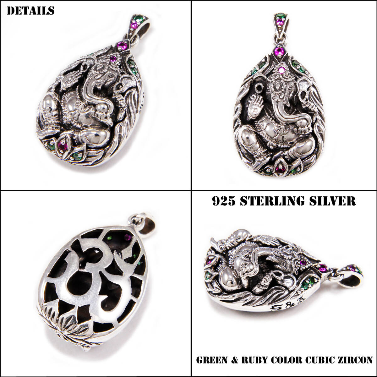 ガネーシャ ジルコニア925シルバーペンダント 925刻印あり SA-039