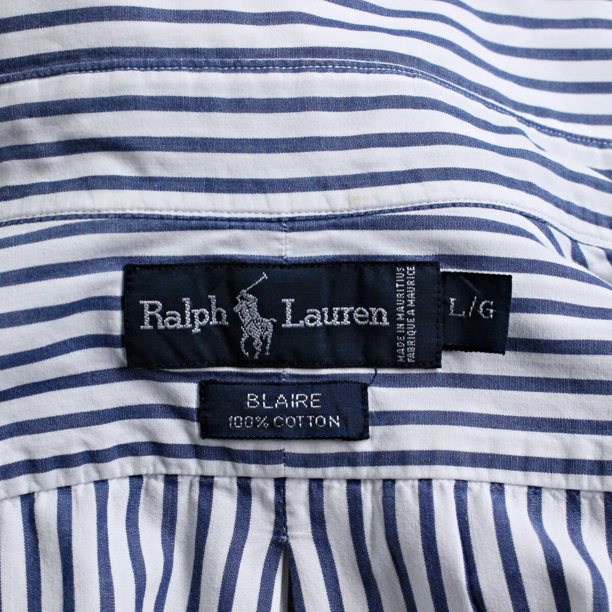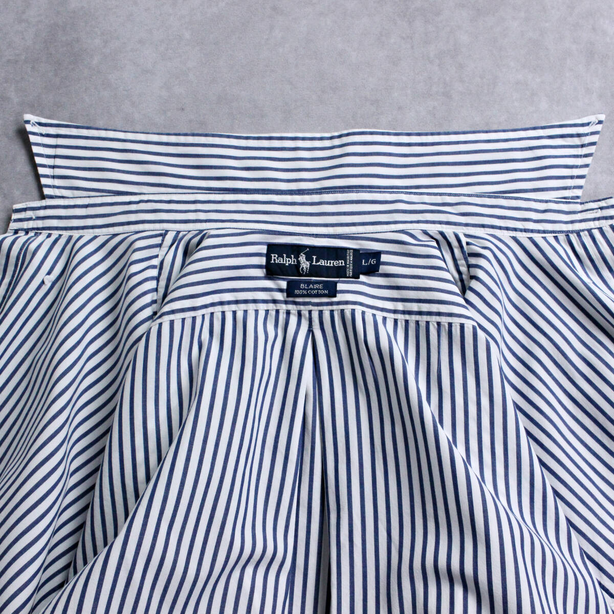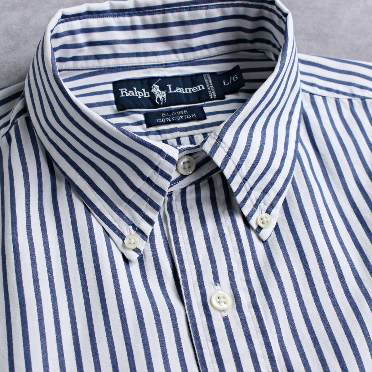 【Ralph Lauren】90s BLAIRE ブロードストライプ 長袖シャツ 胸ポケットつき ボタンダウン Lサイズ ビンテージ ラルフローレン