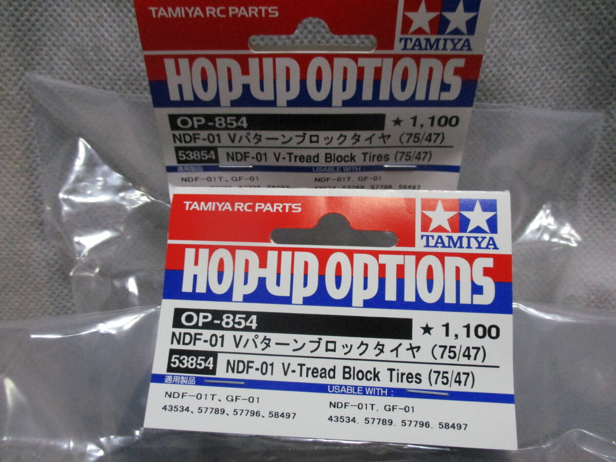 未使用未開封品 タミヤ OP-854 NDF-01 Vパターンブロックタイヤ(75/47) 2セット、になります。