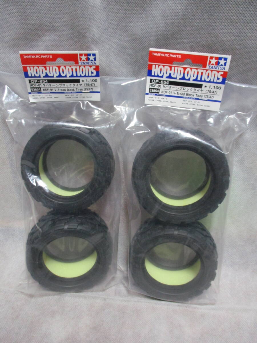 未使用未開封品 タミヤ OP-854 NDF-01 Vパターンブロックタイヤ(75/47) 2セット