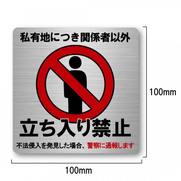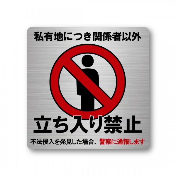 ●商品品番 B-001HE 立ち入り禁止 ステッカー ヘアライン シルバー 四角