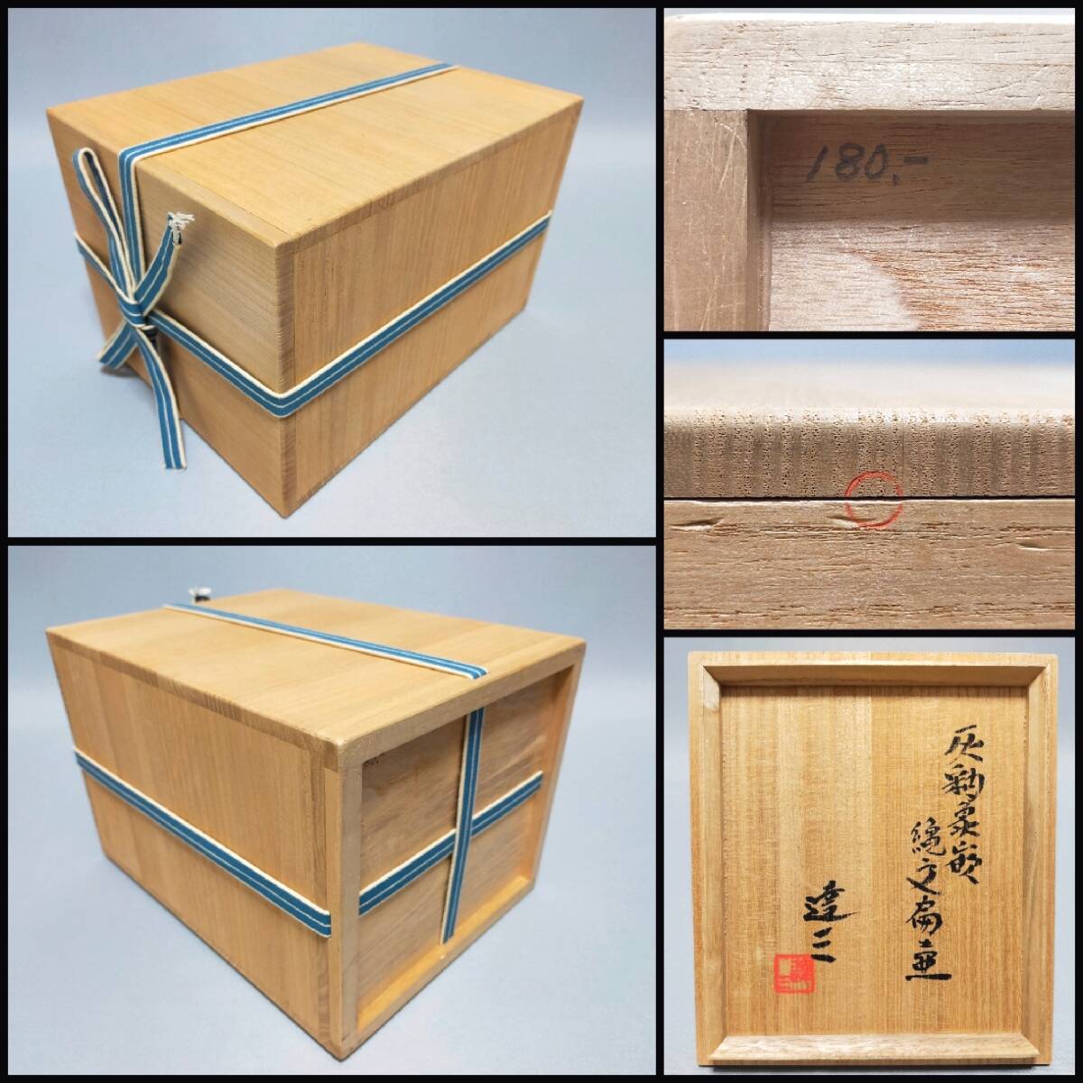 花瓶 人間国宝 島岡達三 造 灰釉象嵌 縄文扁壷 花入 高24cm 共箱 師:浜田庄司 古美術品