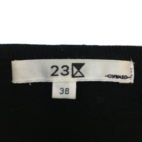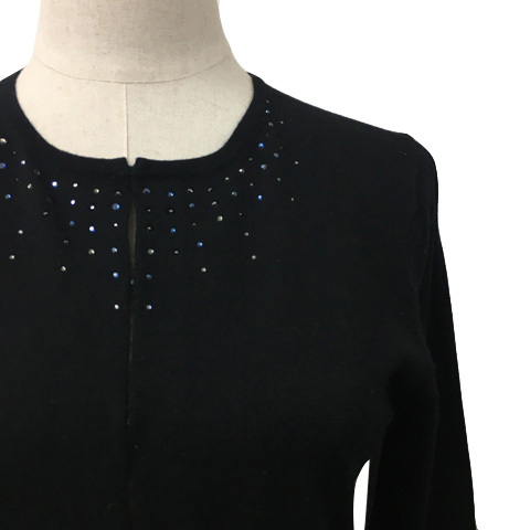 23区 オンワード樫山 カーディガン ニット ラウンドネック 無地 ウール ビジュー 七分袖 38 黒 ブラック レディース