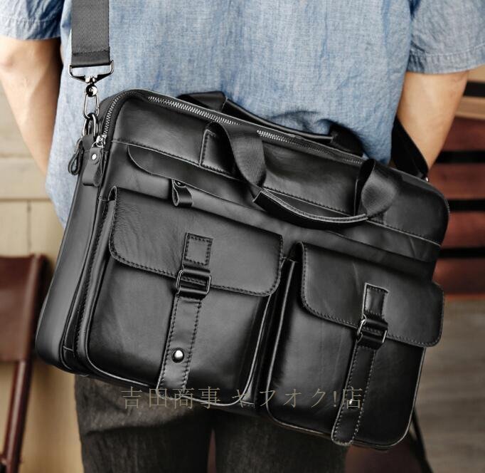 ☆新品牛革 ビジネスバッグ メンズ ショルダーバッグ 2way 通勤 レザーバッグ 本革 ブリーフケース 大容量 トートバッグ 紳士 黒