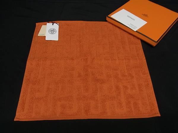 ■新品■未使用■ HERMES エルメス ステアーズ コットン100% ハンドタオル ハンカチ レディース メンズ オレンジ系 FM4248