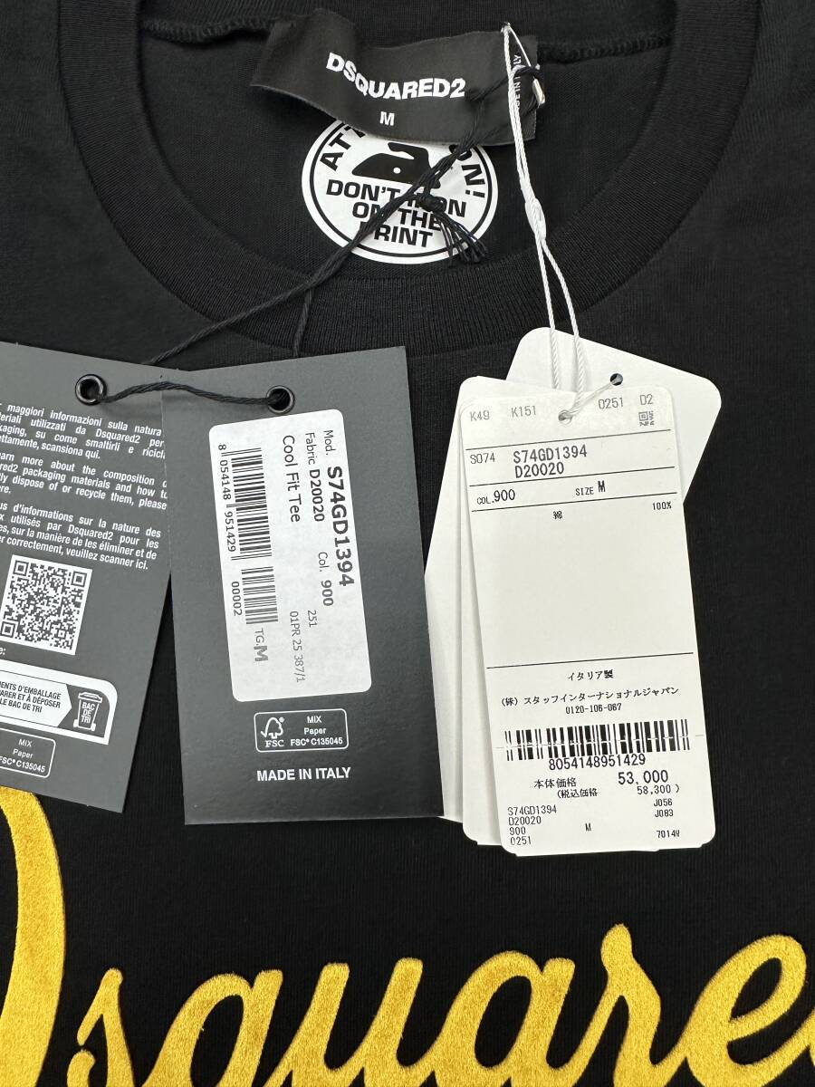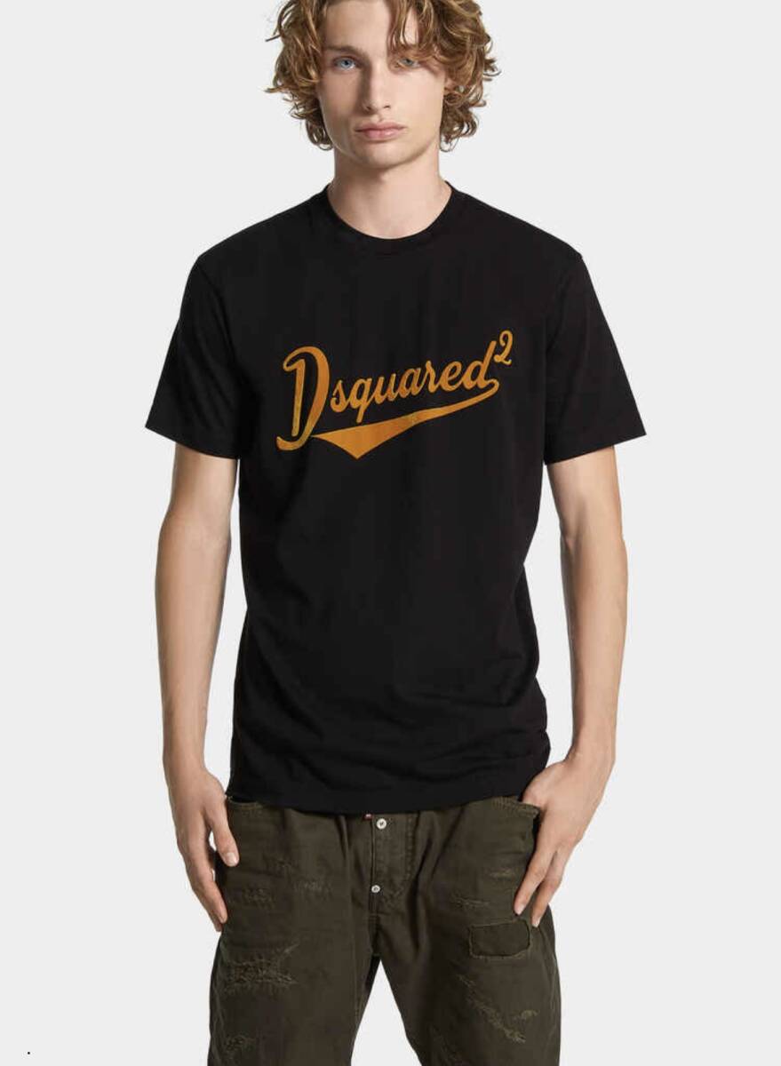 25'春夏新作☆Dsquared2☆ICON☆ディースクエアード☆半袖☆Tシャツ☆COOlFIT☆Mサイズ☆黒☆黄色ロゴ