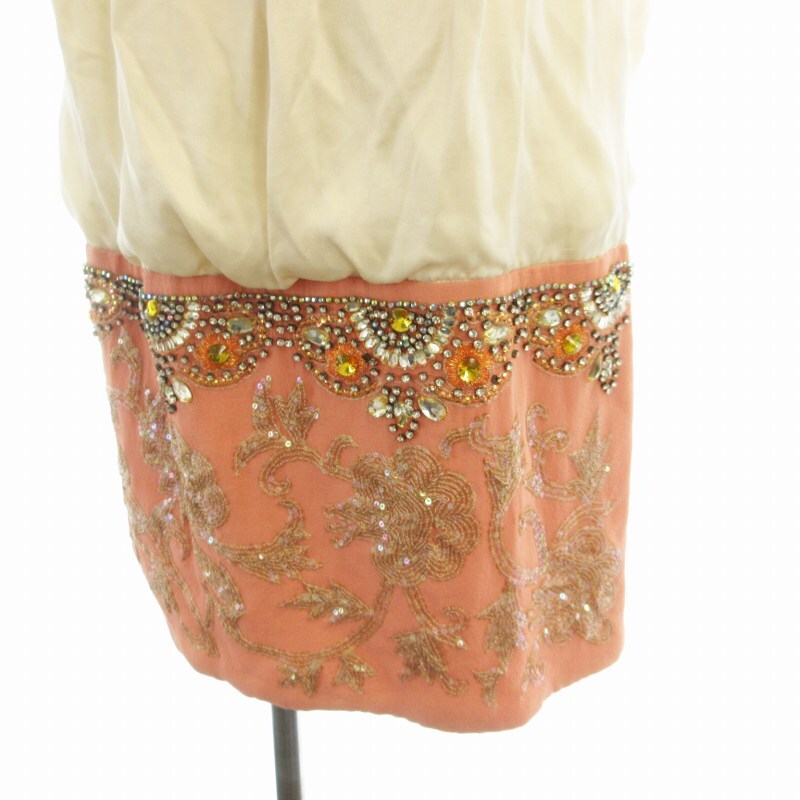 グレースコンチネンタル タイトワンピース ひざ丈 ビジュー装飾 ノースリーブ 36 ベージュ オレンジ 0712 0131 /RO レディース