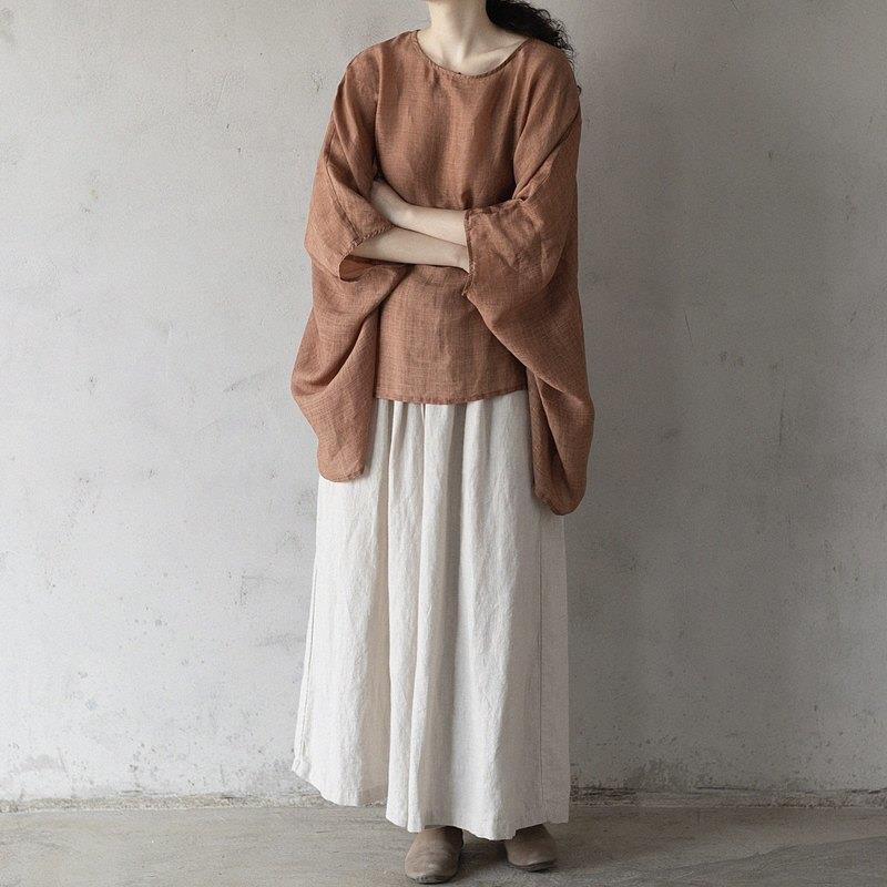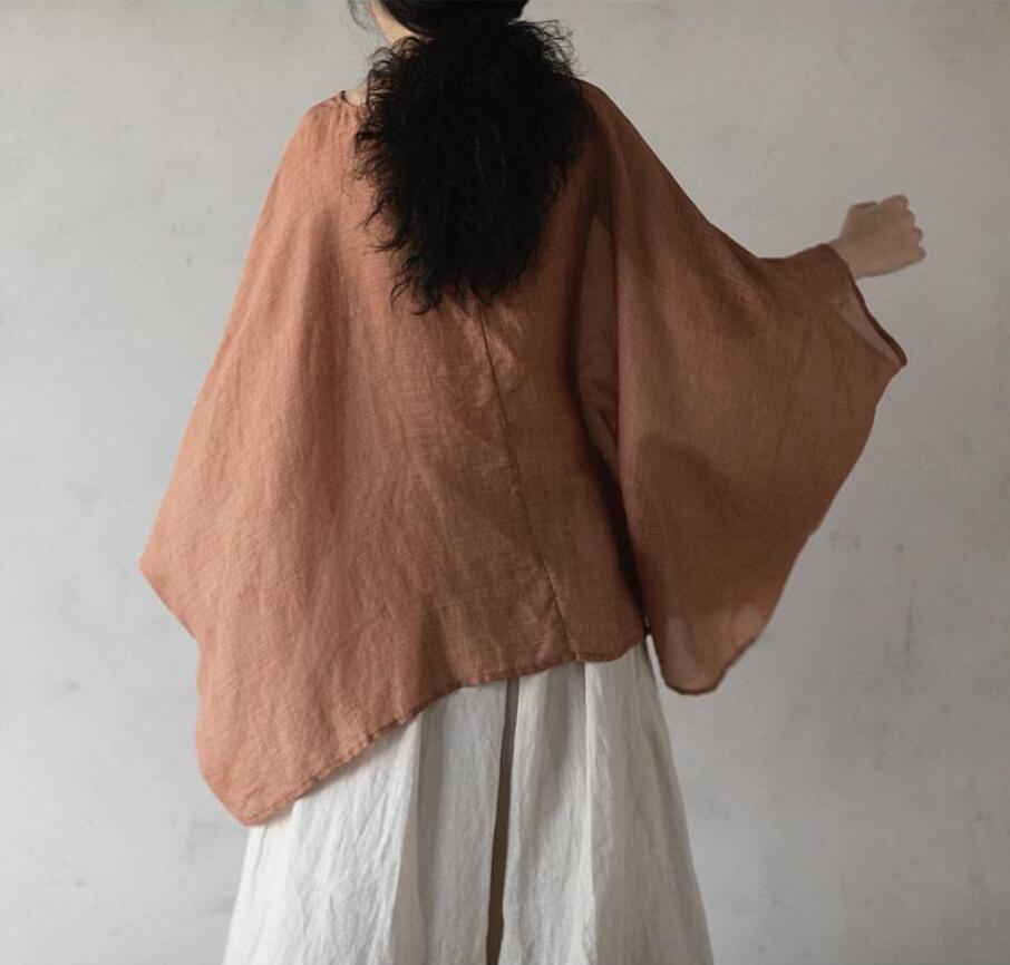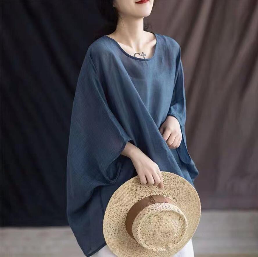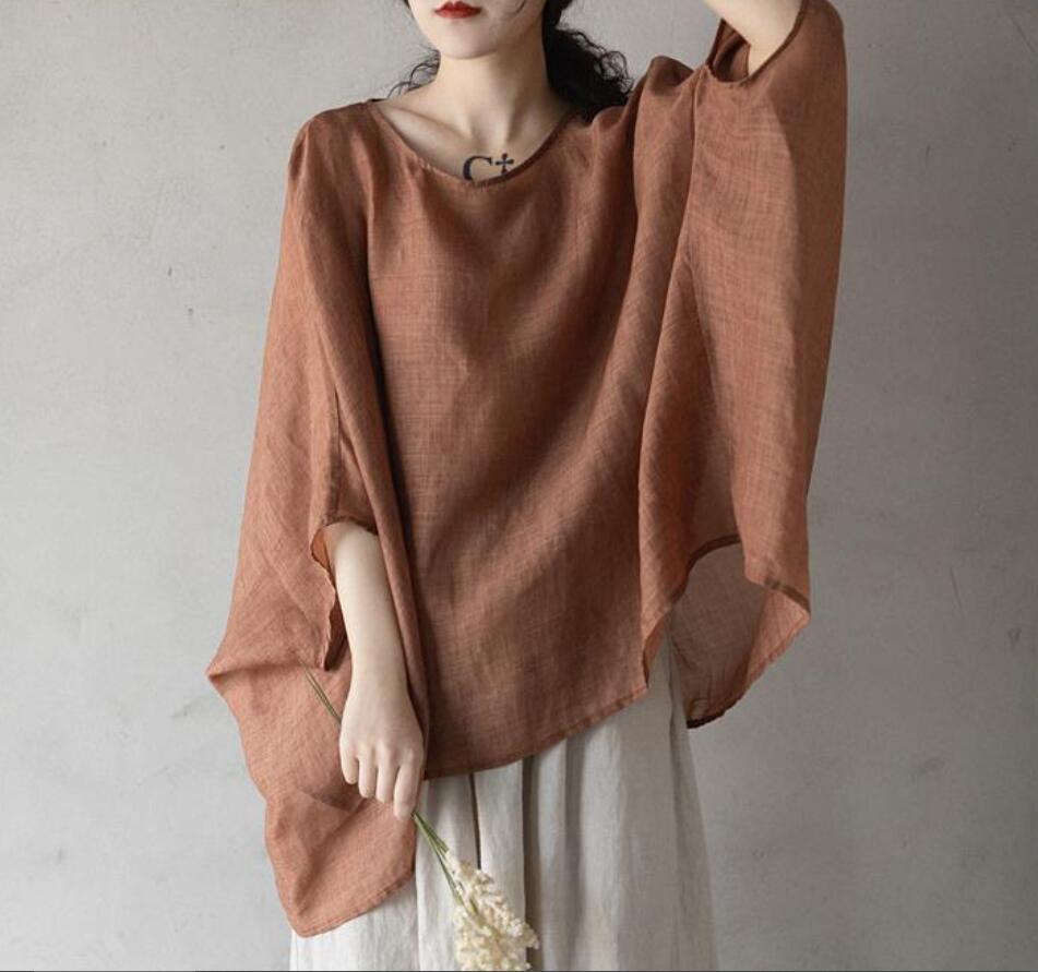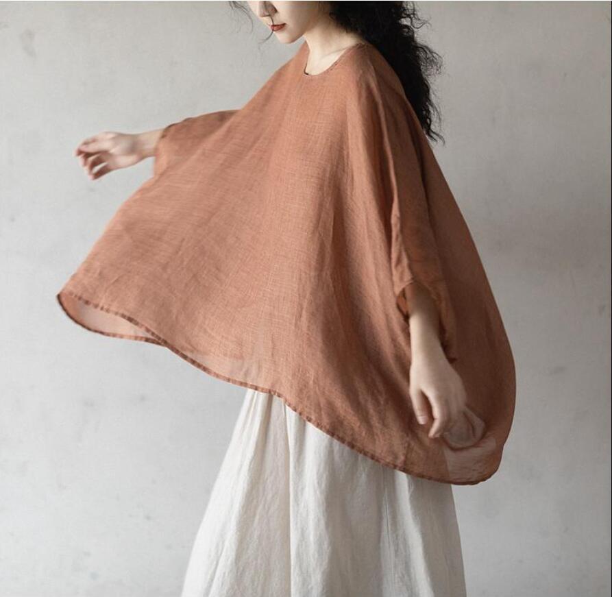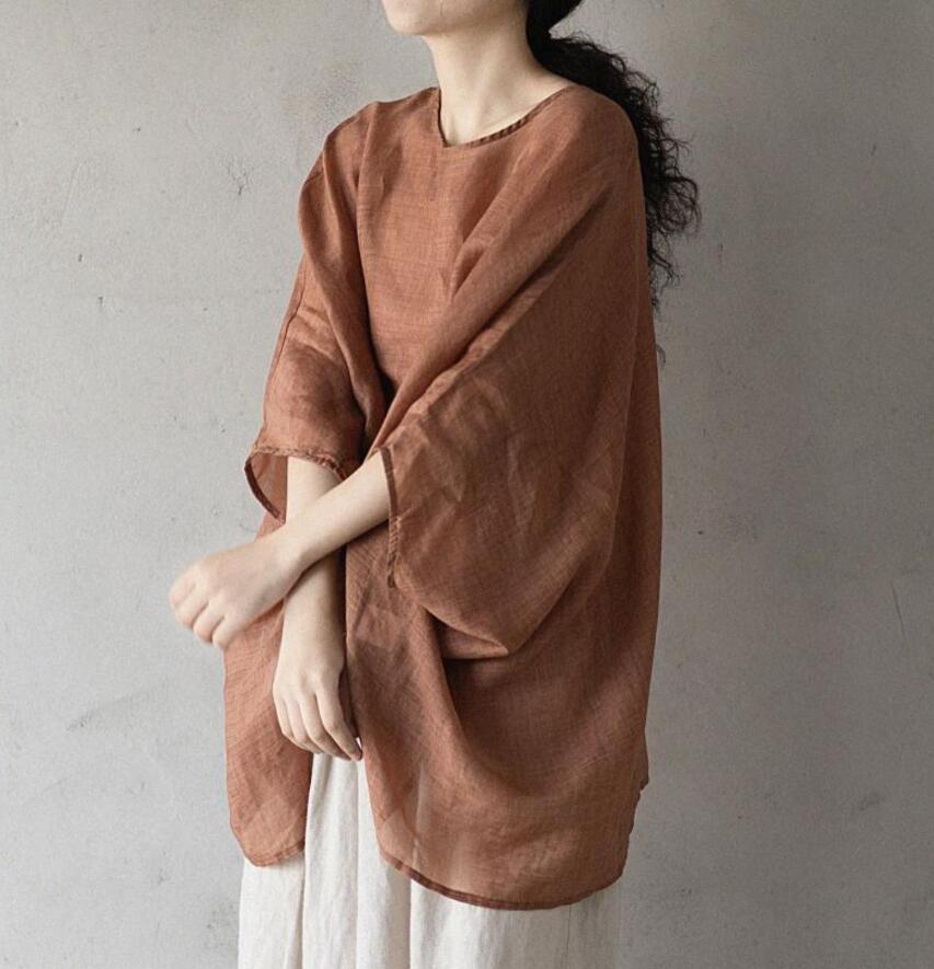 春夏新品~カジュアル チュニック 可愛い 大人 ドルマン袖 半袖 ブラウスシャツ 大きいサイズ きれいめ 薄手 トップス ~ オレンジ