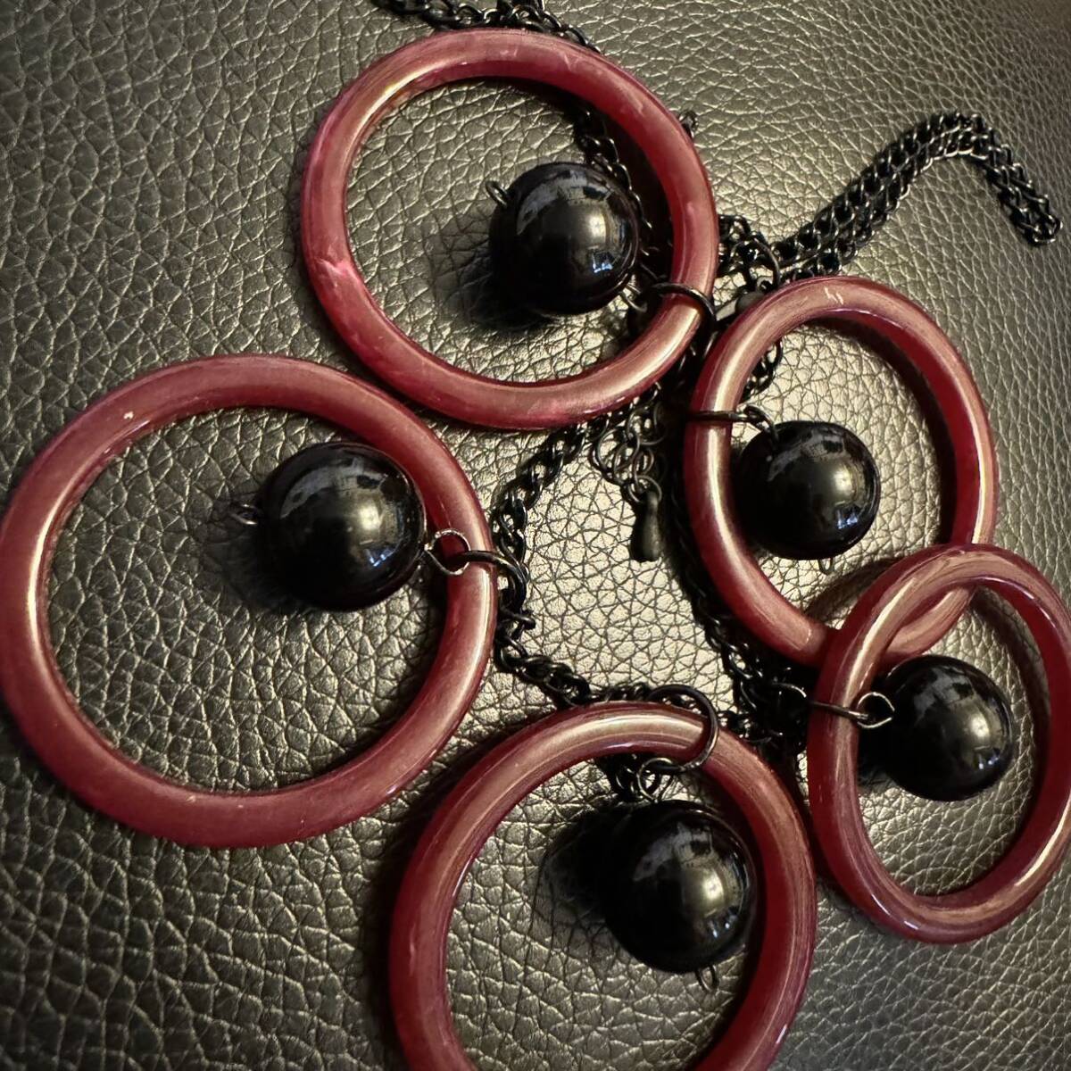 海外や日本で探したパーツでツートンカラーのネックレスを作りました。
