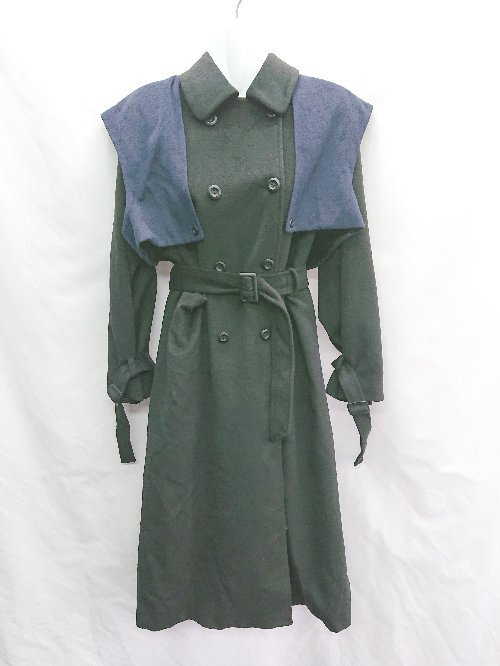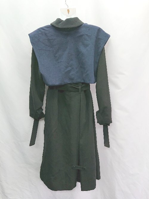 ■ A de a.v.v ウエストベルト付き 長袖 コート サイズS ブラック ネイビー レディース E